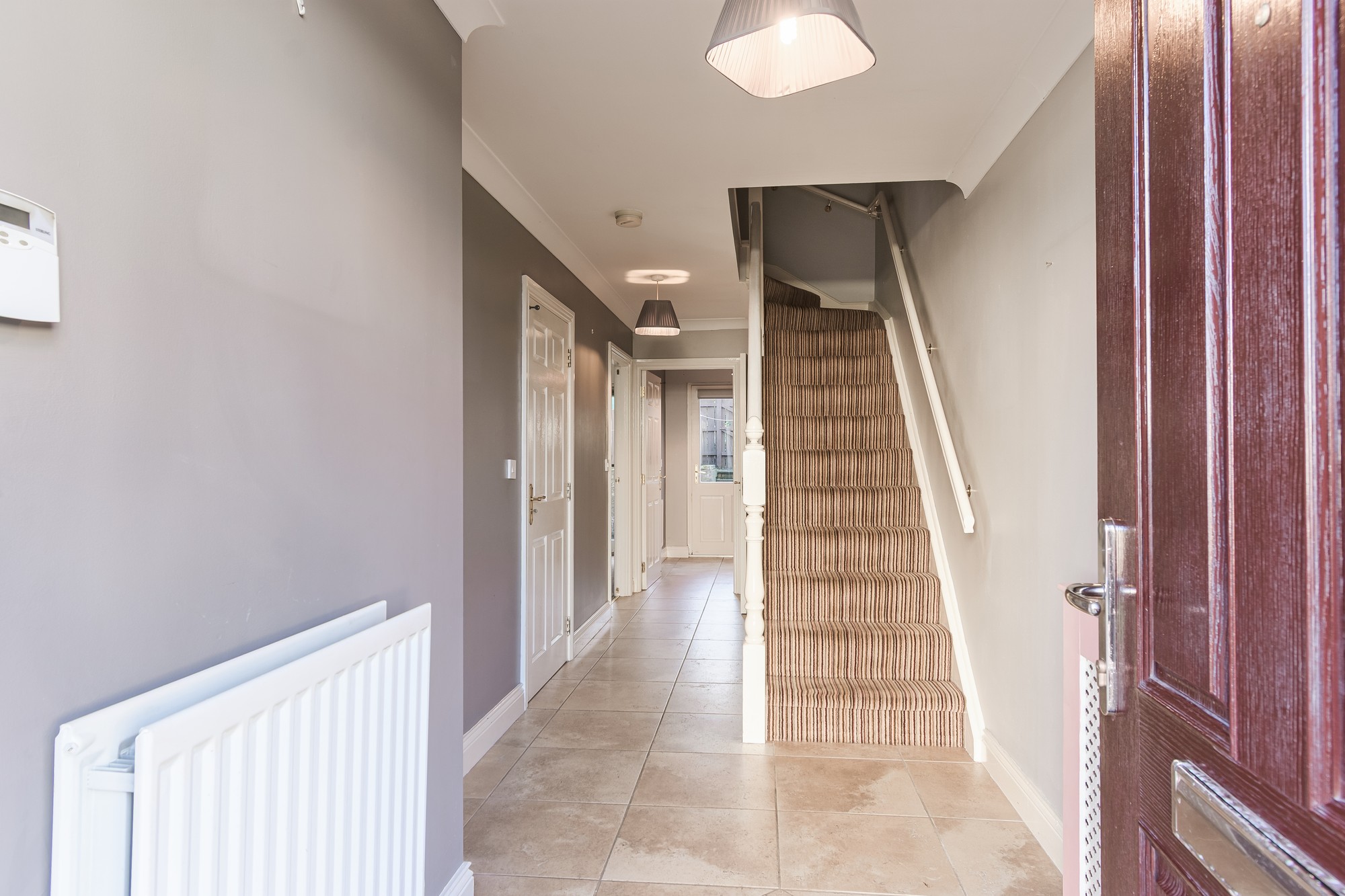 Panelled Entrance Door. Double Glazed Light Over. Tiled Floor. Spindled Staircase to First Floor.