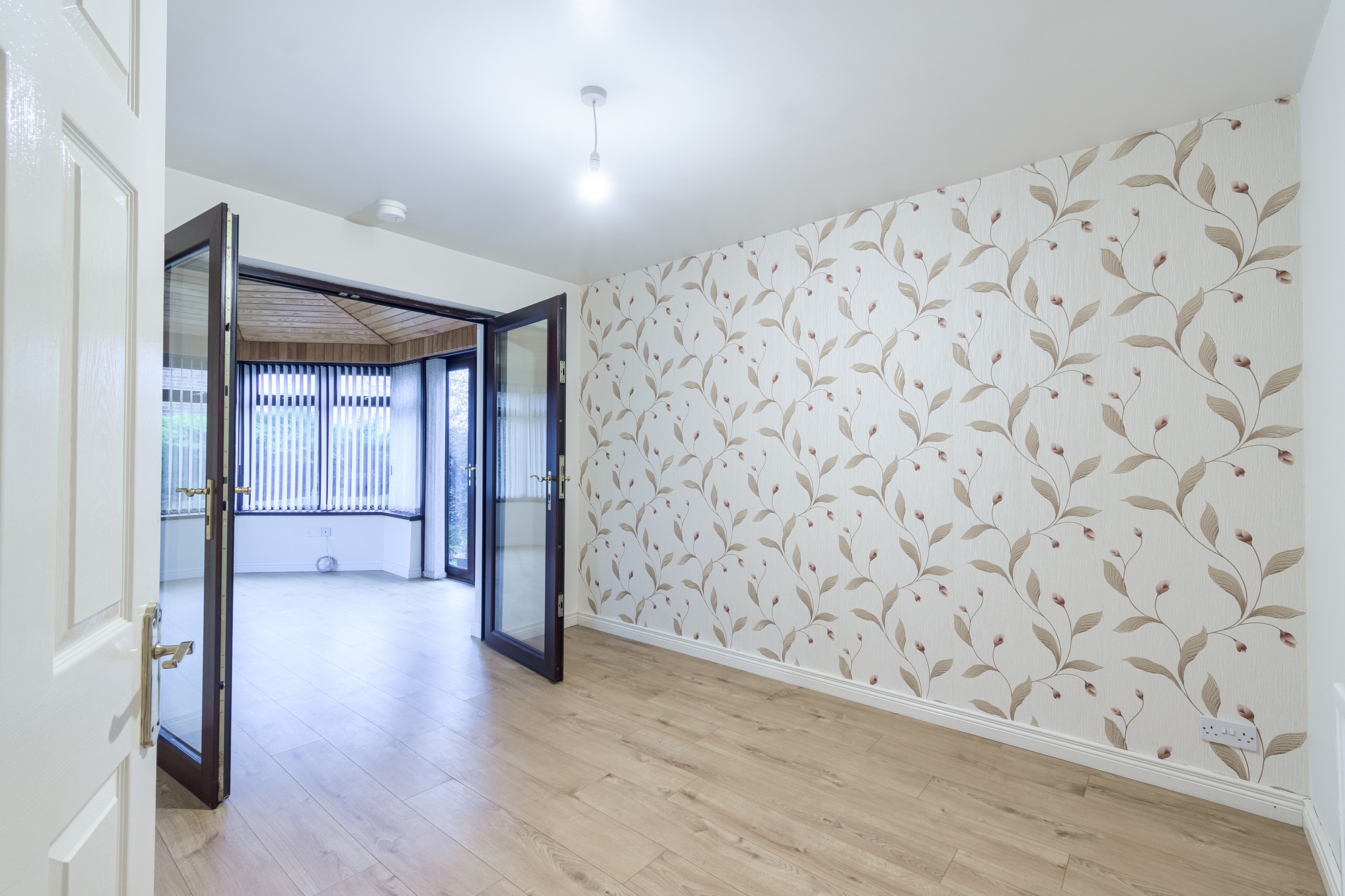 Accommodation comprises; covered entrance, entrance hall, living room, dining room with patio doors which open into a sunroom, kitchen/dining area, a recently refitted contemporary bathroom and 2 double bedrooms.