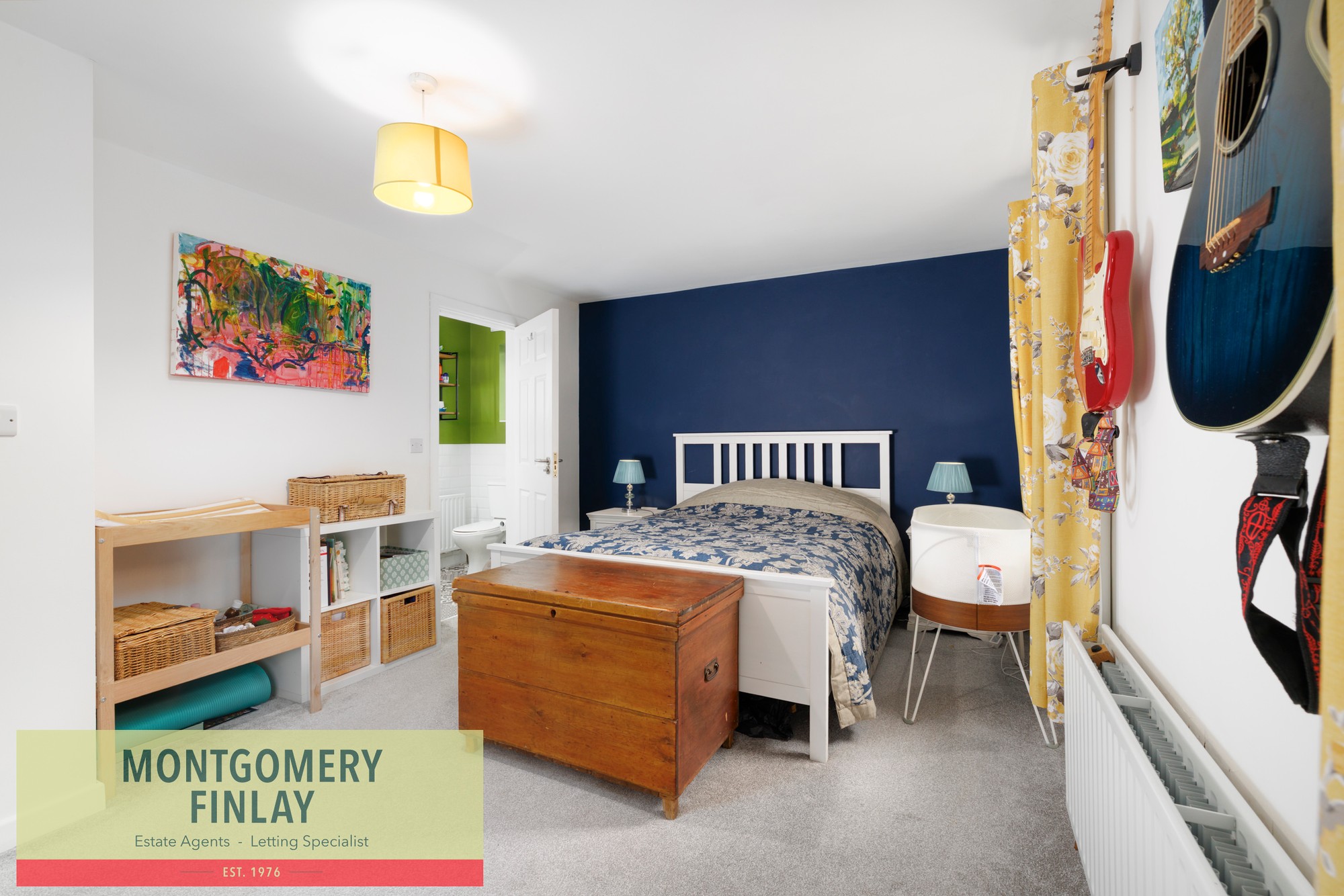 The first floor comprises four generously proportioned bedrooms, including a principal bedroom with ensuite shower room, alongside a modern family bathroom and additional storage via a hotpress. Externally, the property benefits from a private rear garden and access to communal parking and green areas.