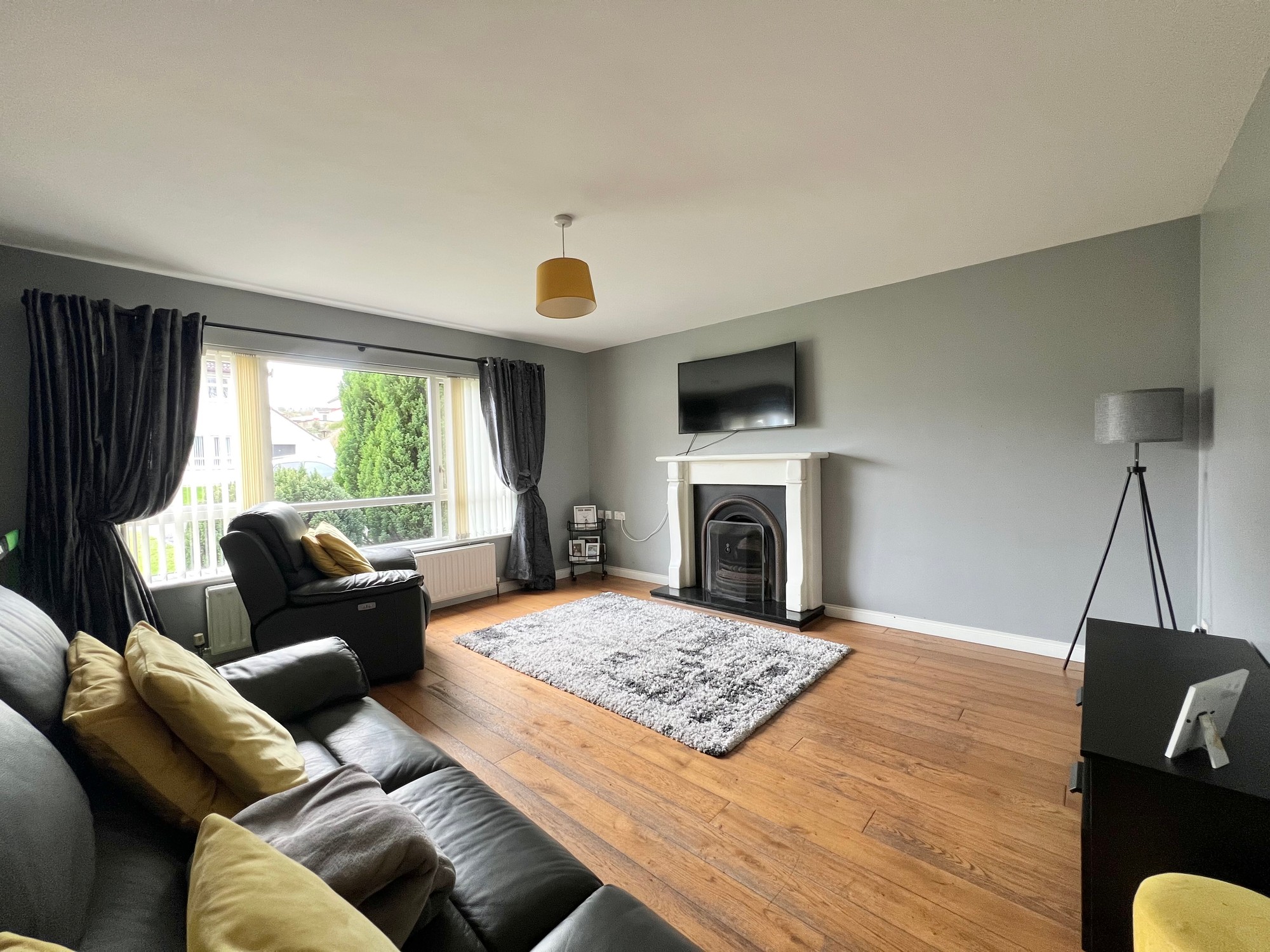 With feature fireplace, wood floor, tv point.