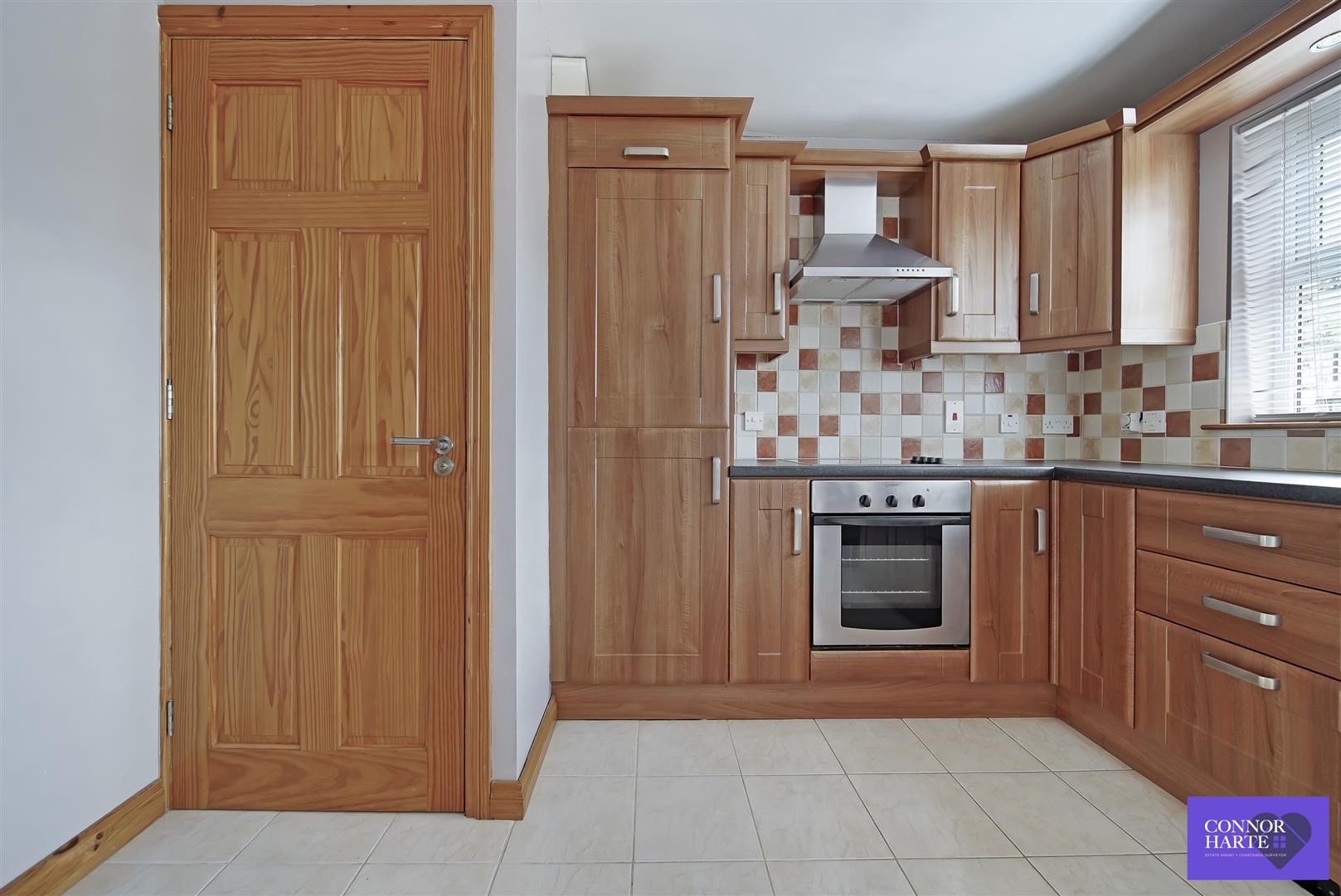 Modern fitted kitchen with built in electric oven and hob