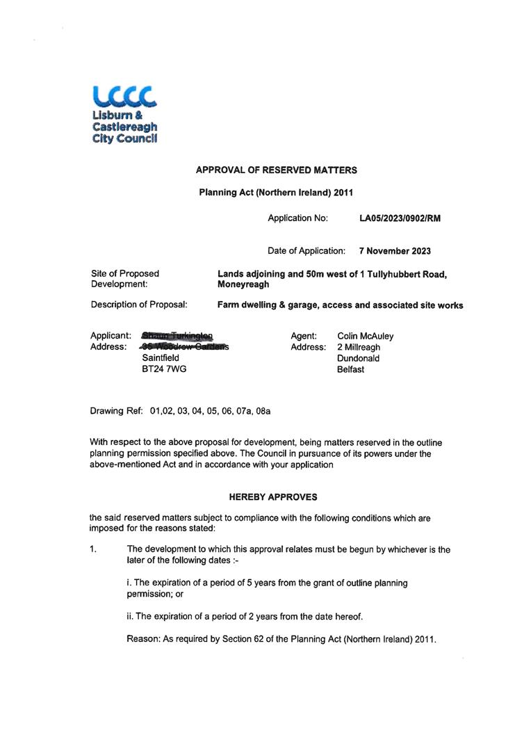 Mains electricity and water are convenient to the site. Planning permission was granted under application no. LA05/2025/0920/RM