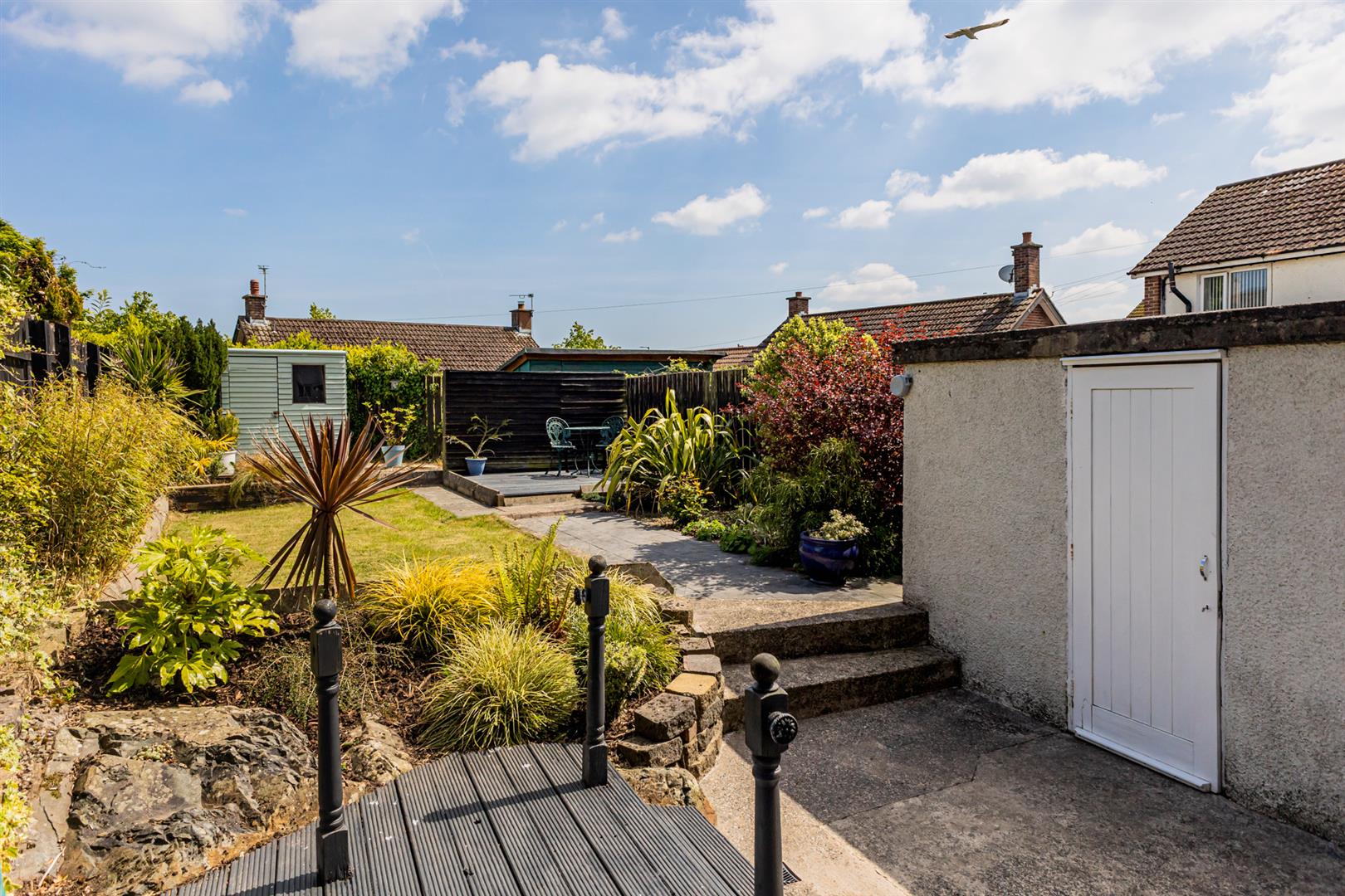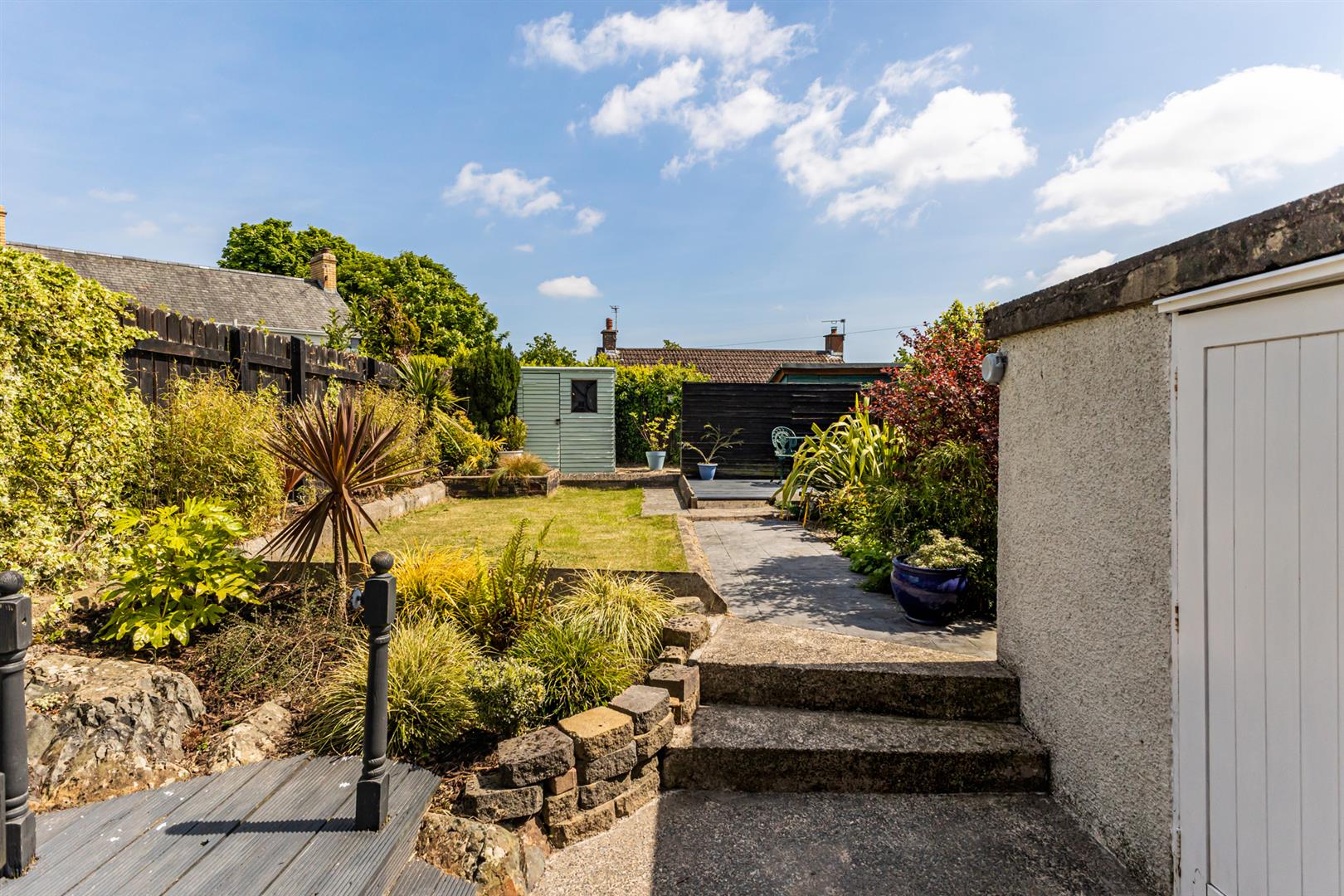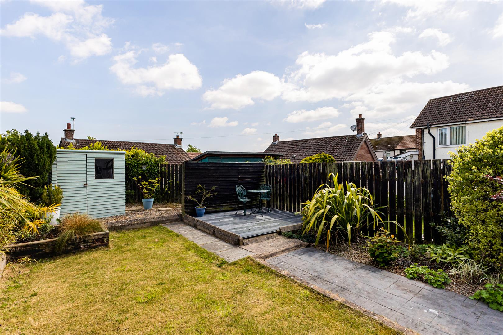 Enclosed west facing rear gardens laid out in lawns with two decking areas to catch the afternoon sun; flowerbeds hosting a selection of ornamental and flowering shrubs and trees; stoned area with garden shed and oil storage tank; concrete patio area; water tap and light.