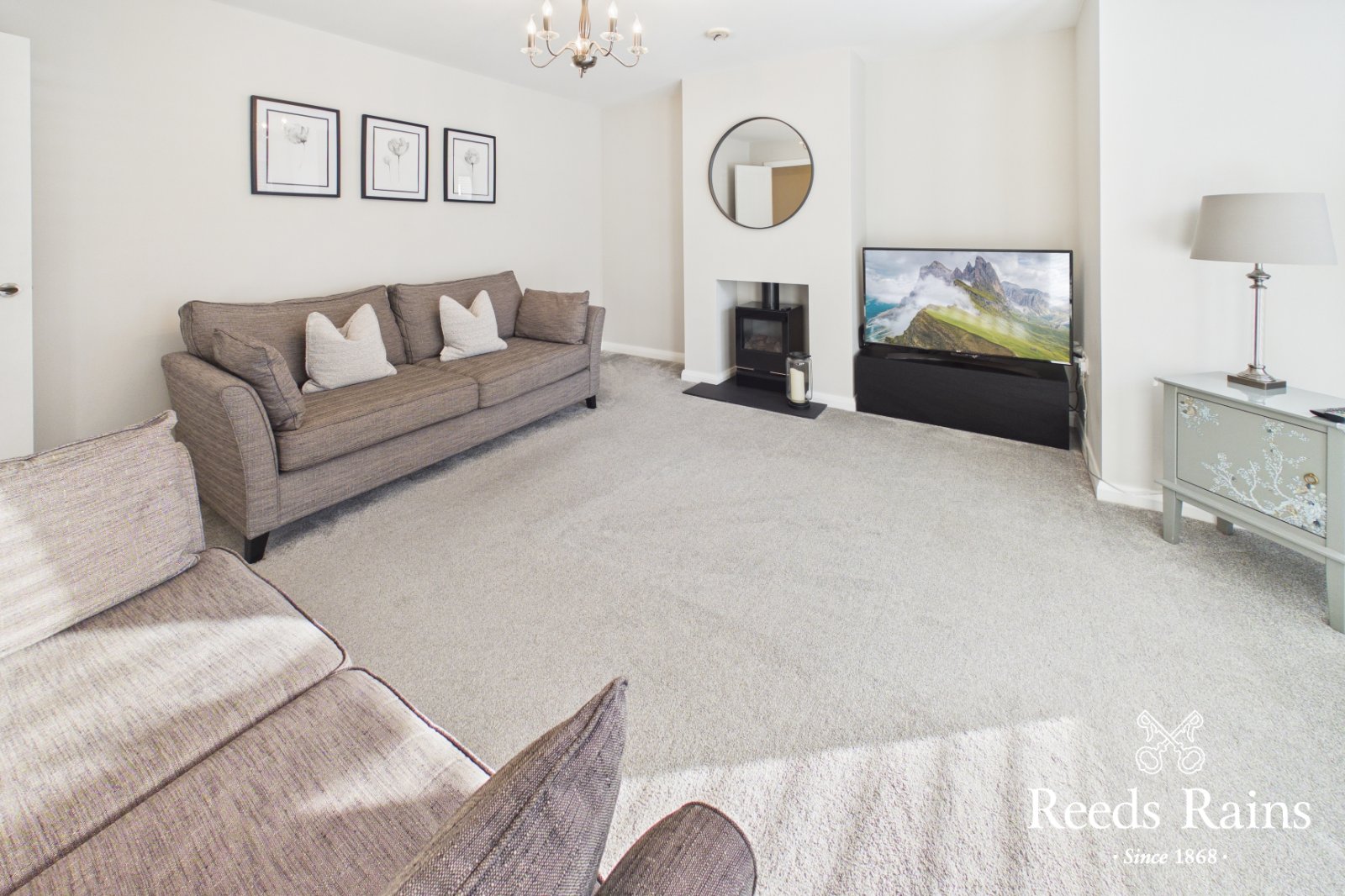 Naturally bright and spacious lounge with dual window aspect to the front. Inglenook fireplace with electric stove. Complete with carpeted flooring.