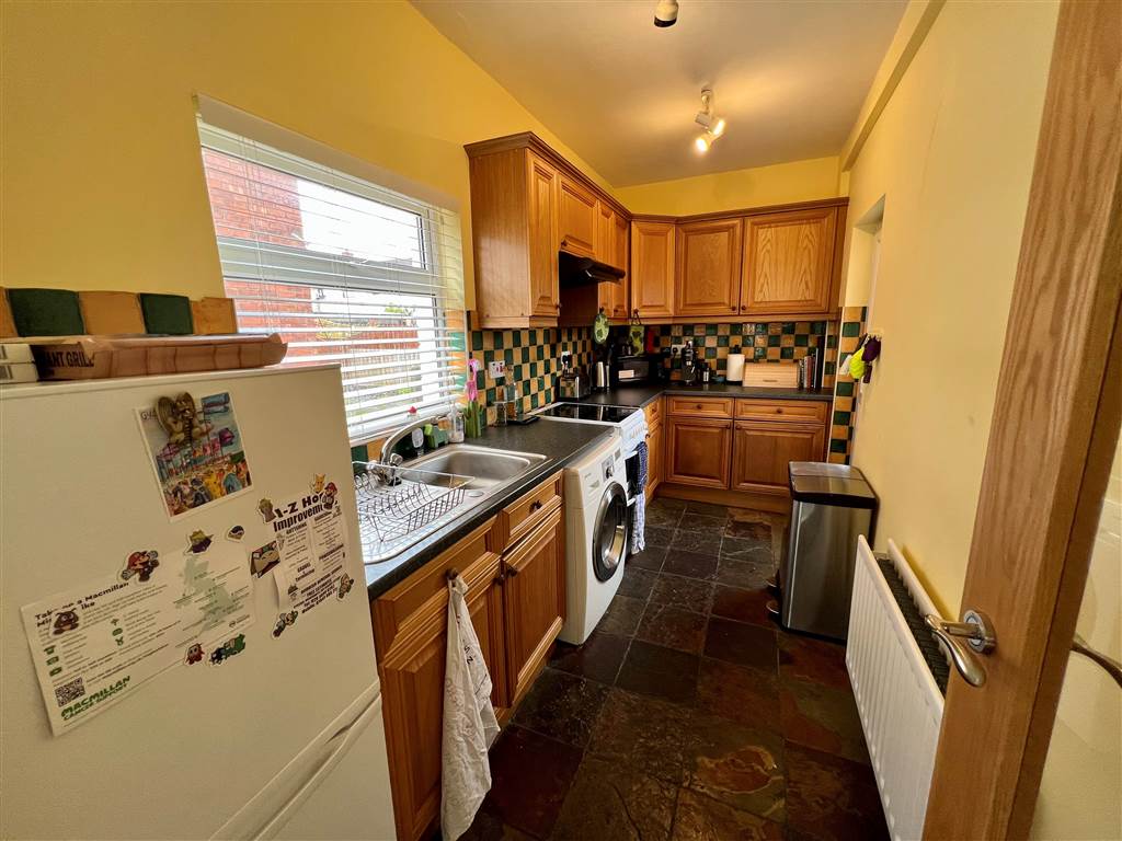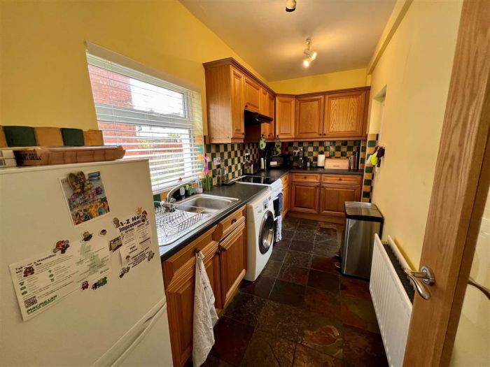 Range of high and low level units. Plumbed foir washing machine.Tiled floor. Stainless steel sink with drainer. Access to rear.