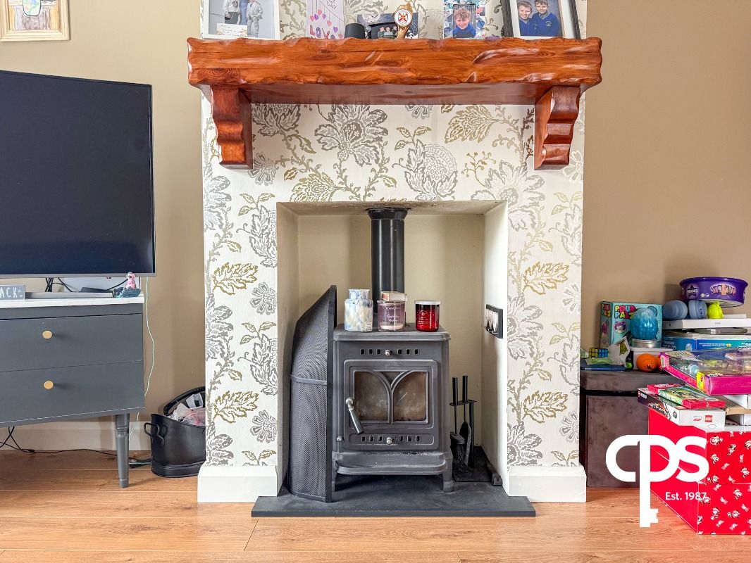 Spacious reception room with multi-fuel stove