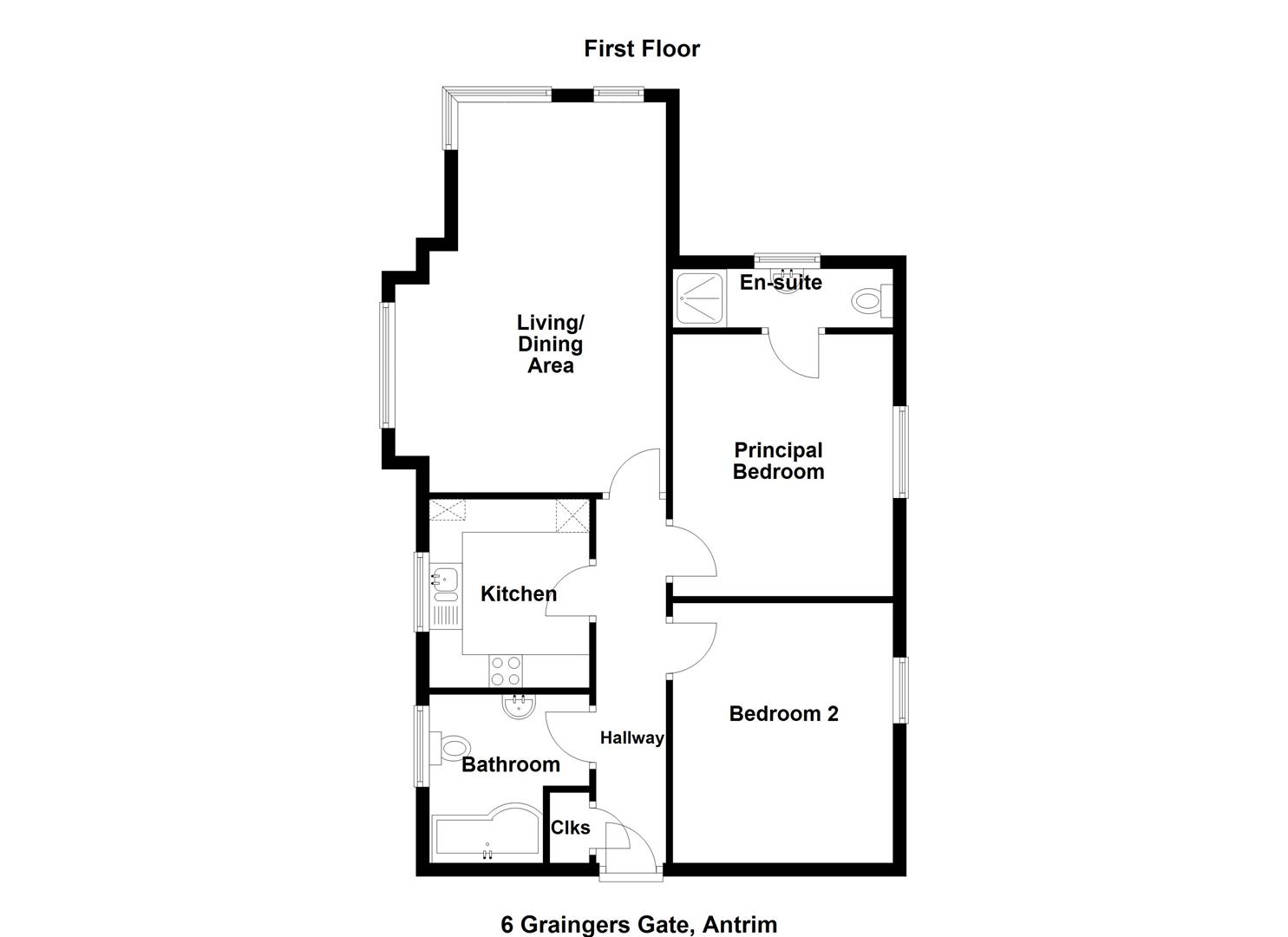 The property comprises communal entrance hall, private entrance hall, bay-fronted lounge, kitchen, two well-proportioned bedrooms, to include principal en suite, and separate bathroom, with contemporary, white, three piece suite.