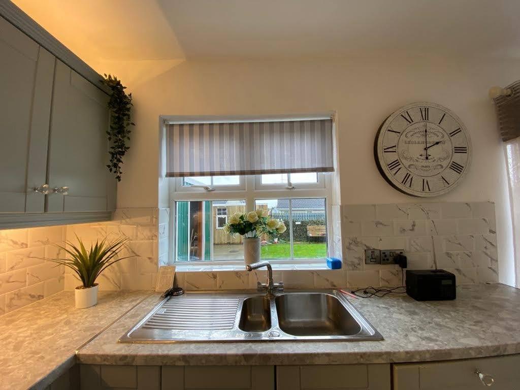 Having sink unit, plumbed for washing machine and dishwasher, tiled floor.