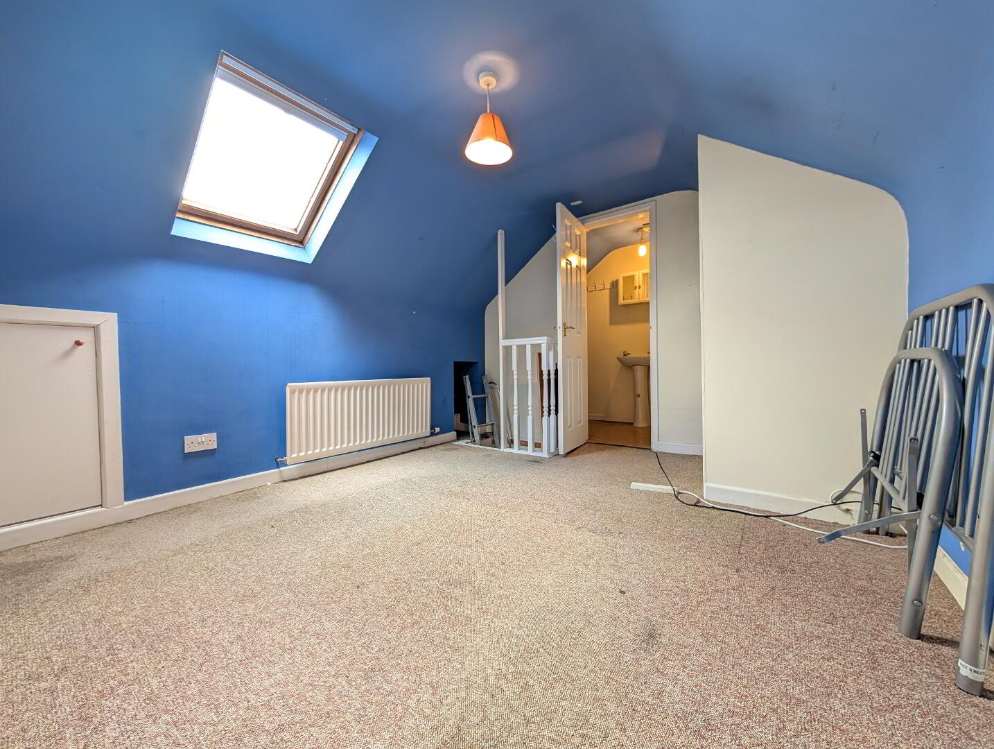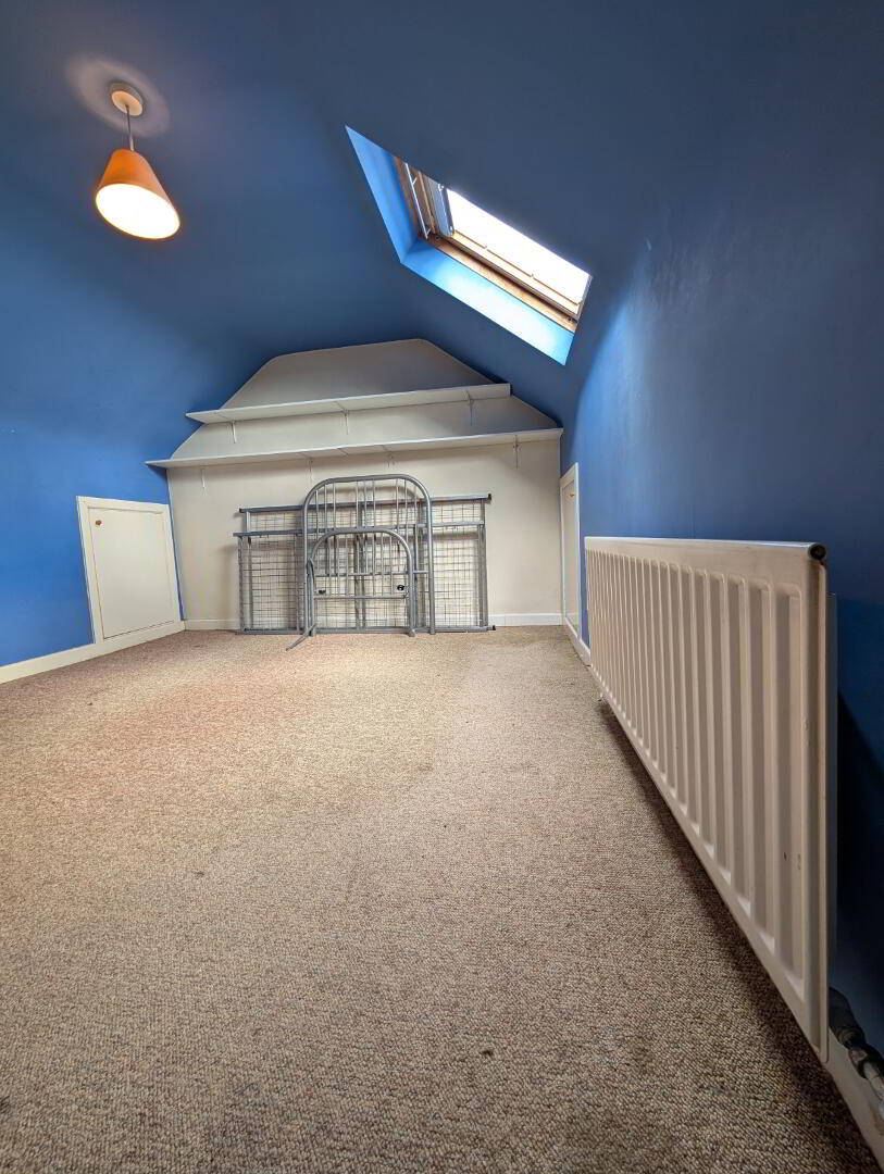 Carpeted staircase onto landing and leading off to 3 x bedrooms, shower room, floored roof-space