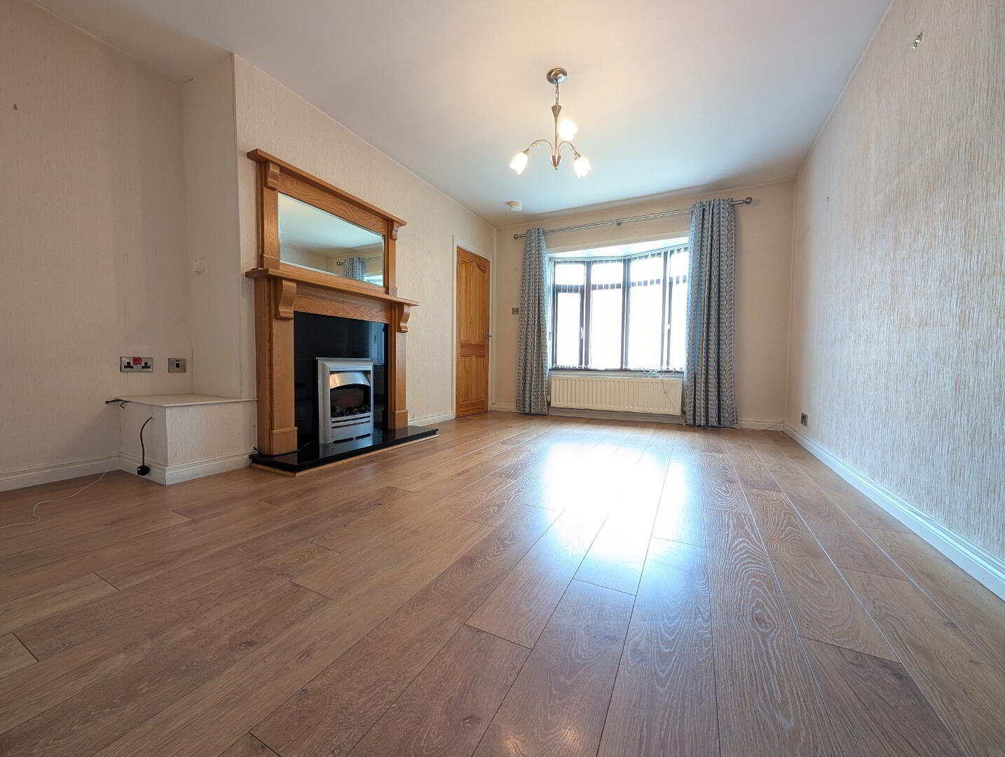 10’ 4” x 14’ 10” (3.15m x 4.51m at widest) Wooden laminate floor, fireplace with pine surround and mantle, polished black marble inset and hearth, feature bay window
