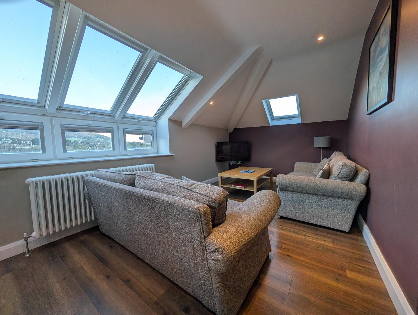 Laminated wood floor, recessed spot lighting, spectacular mountain views