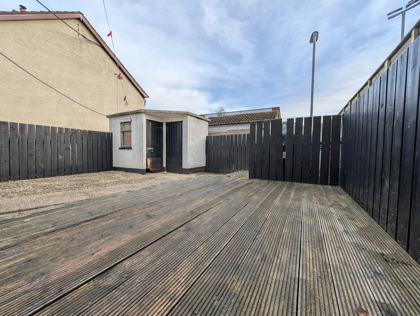 Rear - Enclosed gardens to include decked patio area, 2 x outhouse