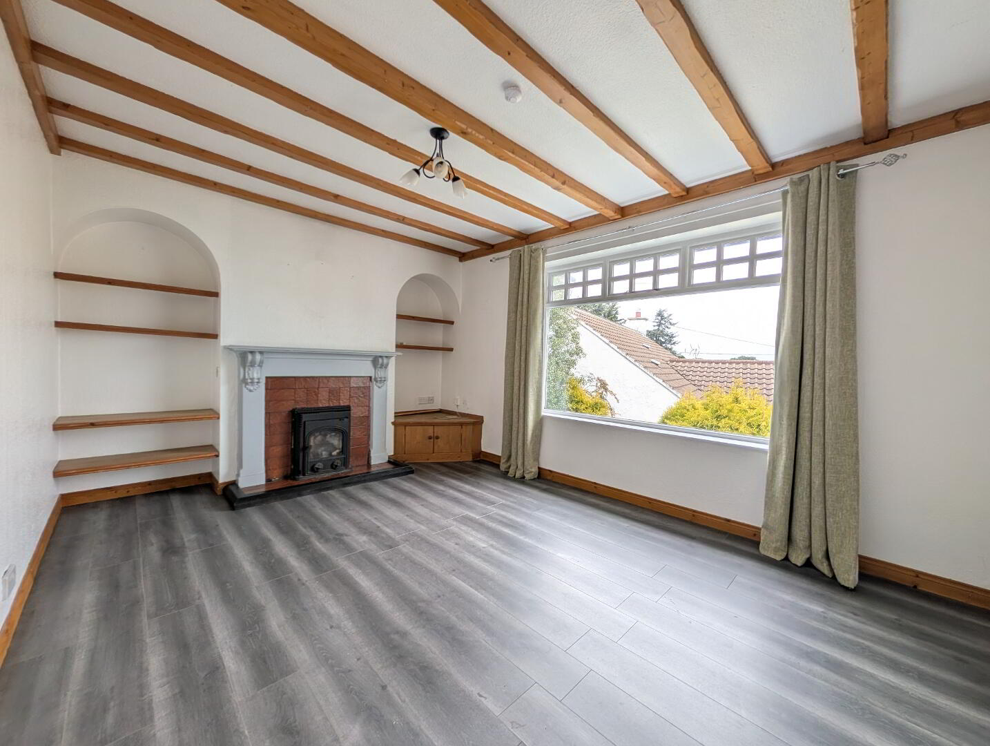 14’1” x 11’9” (4.3m x 3.6m at widest) Solid wood floor continued through from hallway, fireplace with antique terracotta quarry tile surround, feature exposed beam ceiling