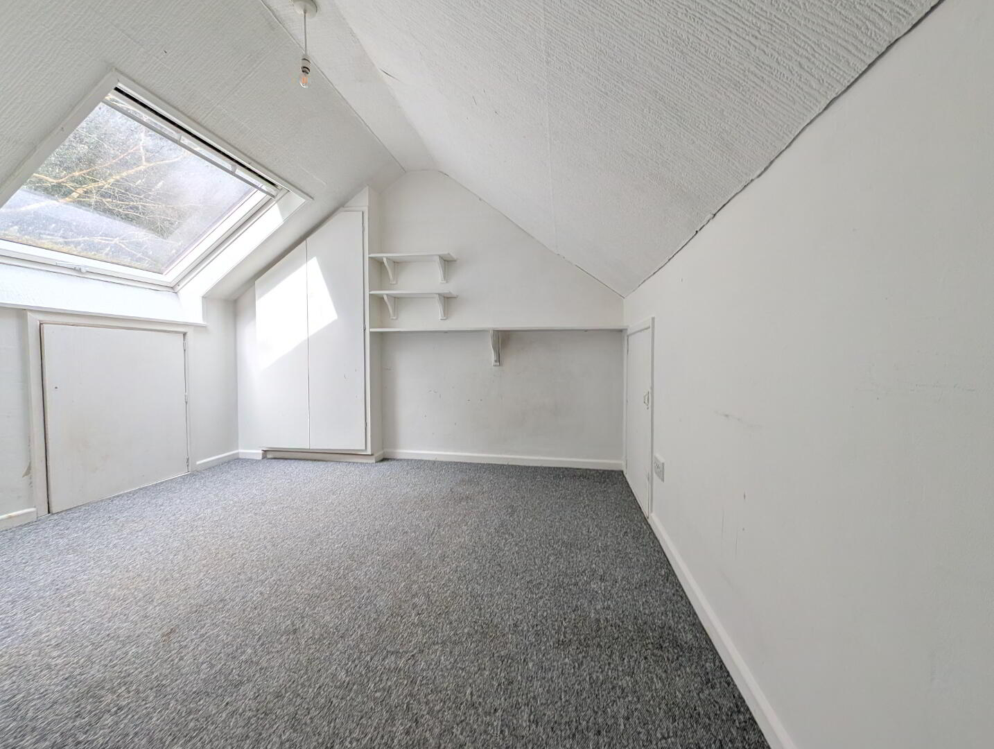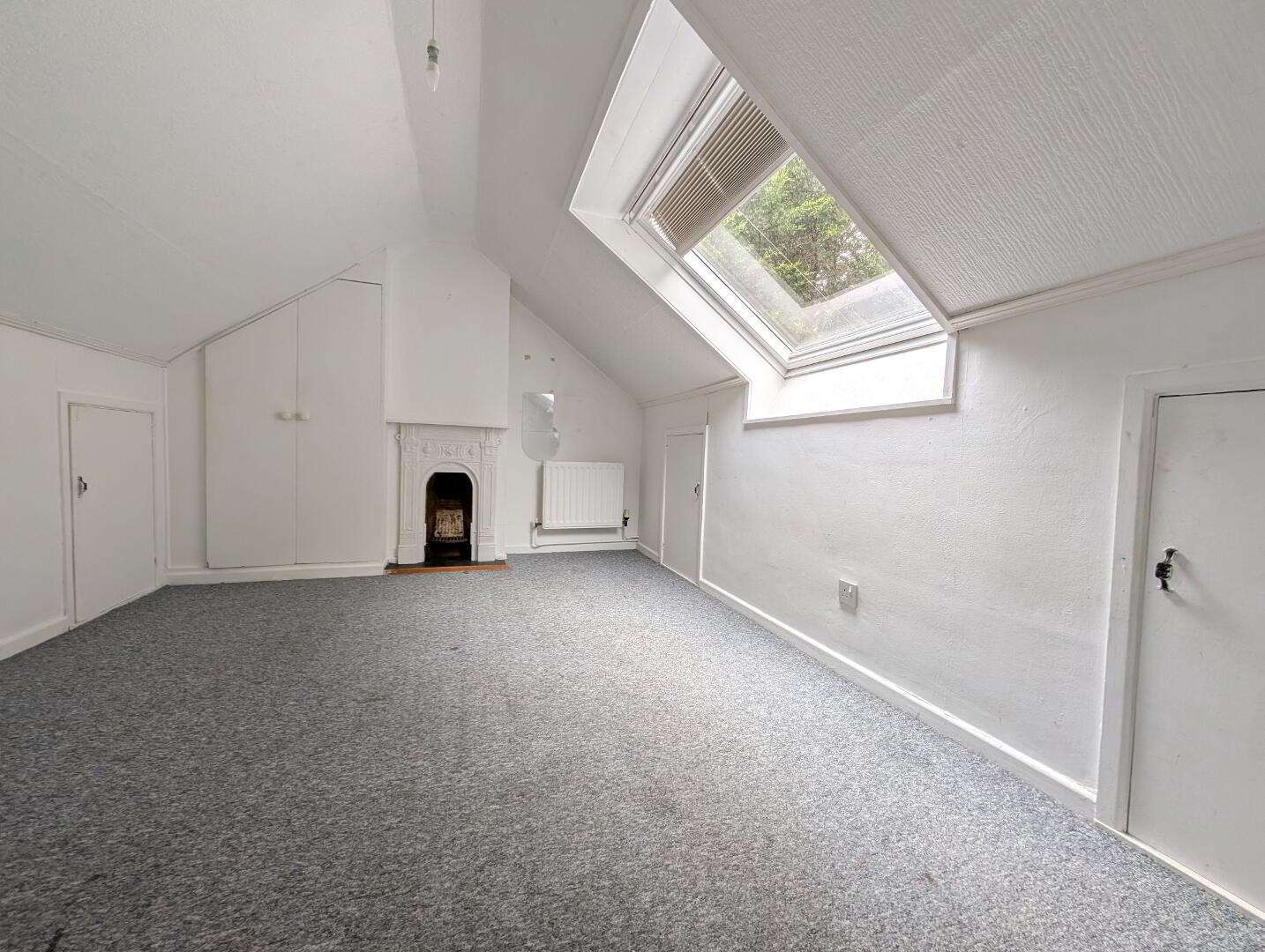 13’1” x 10'6" (4m x 3.2m at widest) Carpet, Velux window, feature fireplace with cast iron surround (dormant), access to eaves for storage, rear facing