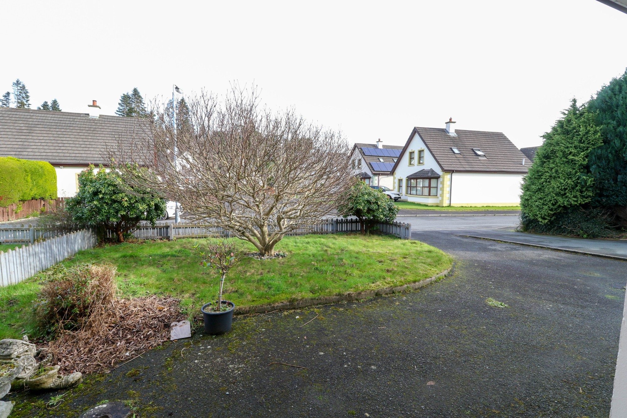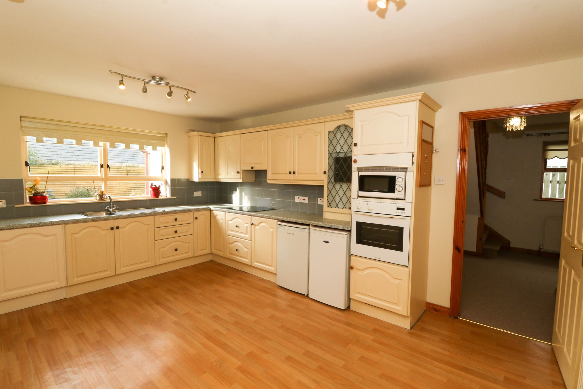 This extended family home provides spacious and bright accommodation comprising entrance hall, living room, kitchen/dining, utility room, bedroom and shower room on the ground floor and two bedrooms and bathroom on the first floor. Enjoying a quiet cul-de-sac position on in this popular development, the property also benefits from double glazed window frames, delightful gardens and pleasant rear mountain views.