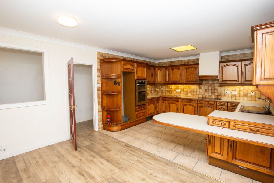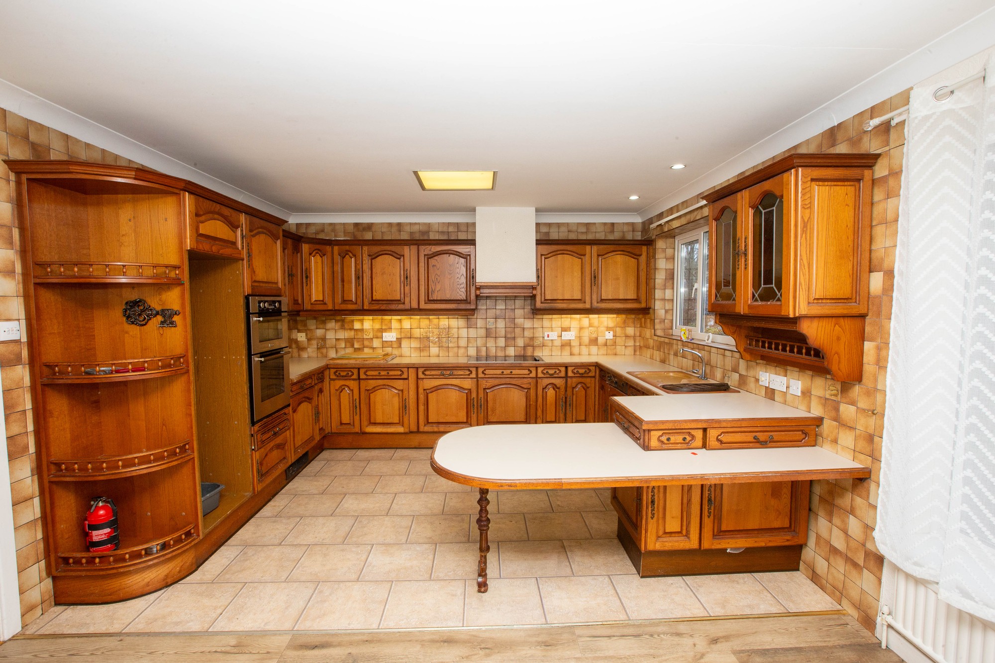 KITCHEN 13’0” x 10’9” (3.96m x 3.3m) - Range of high and low level fitted units, laminate worktops, breakfast bar, ceramic sink unit, high level over, ceramic hob, extractor canopy, part tiled walls, tiled floor.