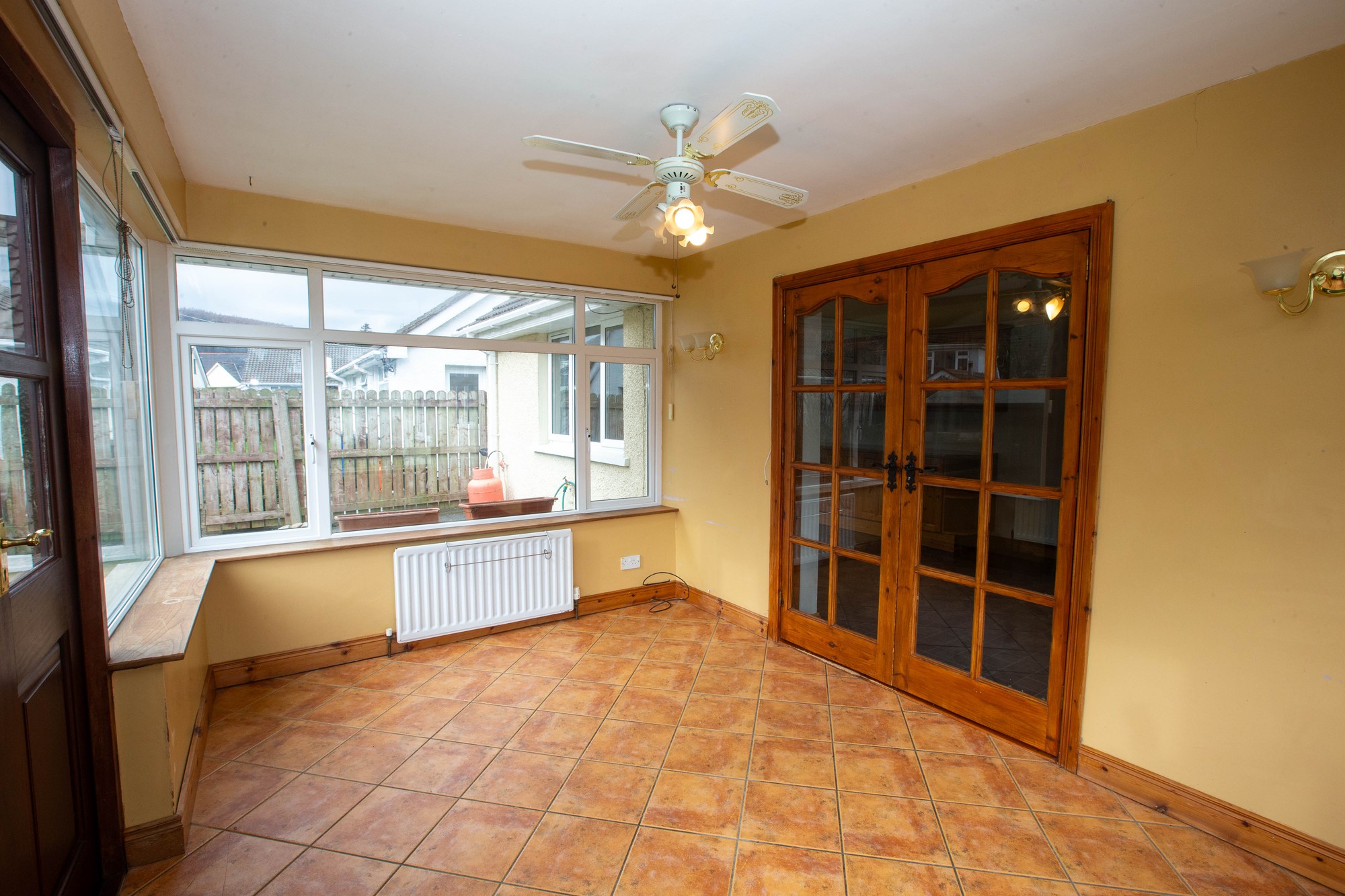 SUNROOM 12’7” x 9’0” (3.86m x 2.74m) - Tiled floor, glazed double doors to rear garden.