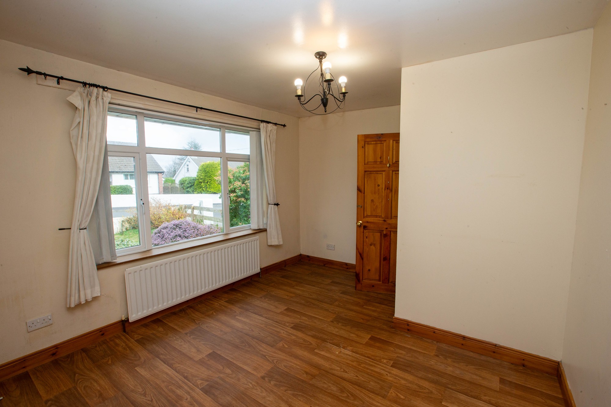 ENTRANCE HALL PVC glazed door, laminate wood flooring, telephone point.