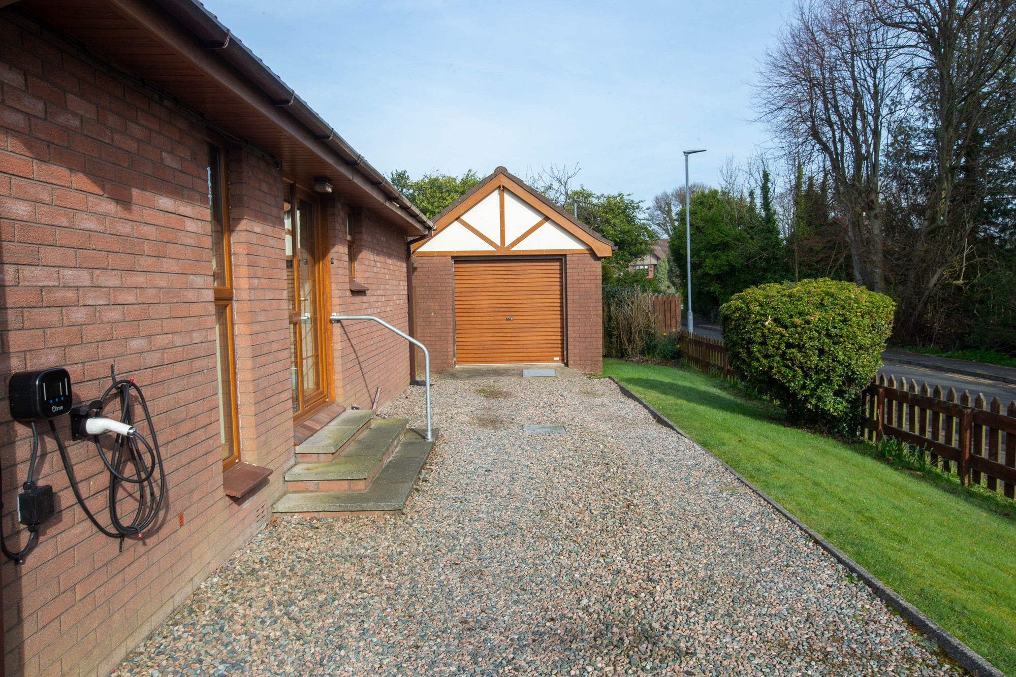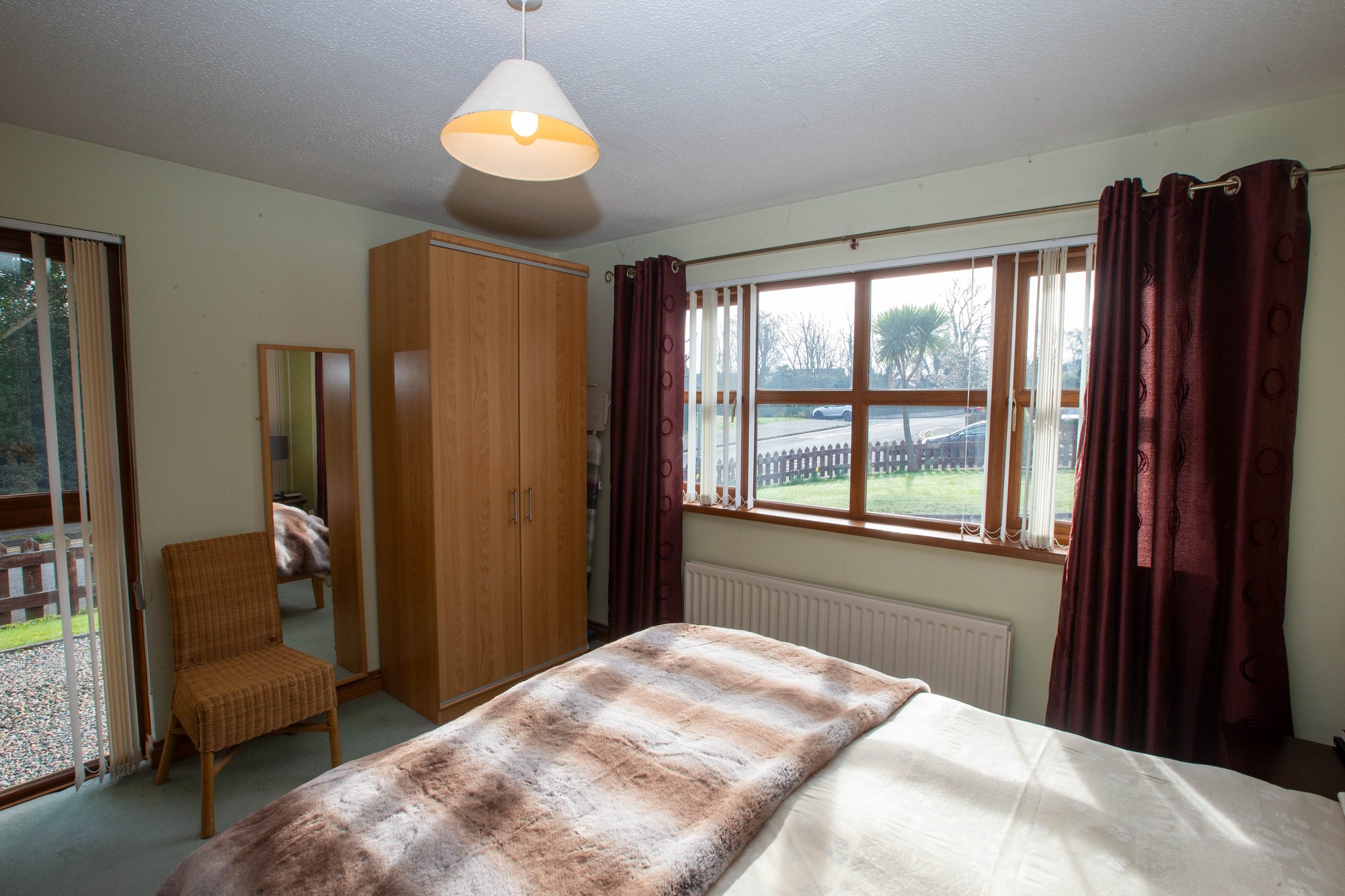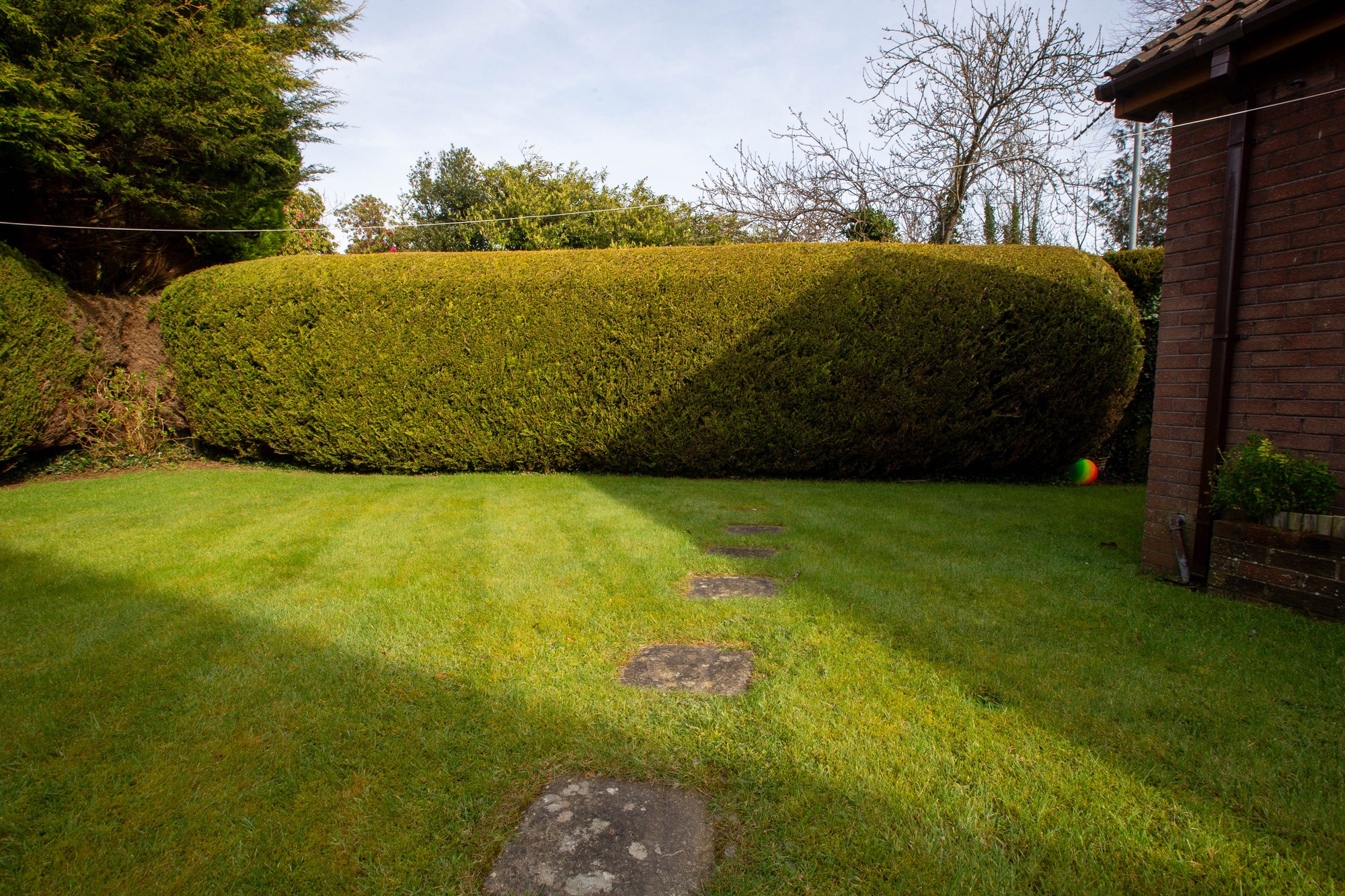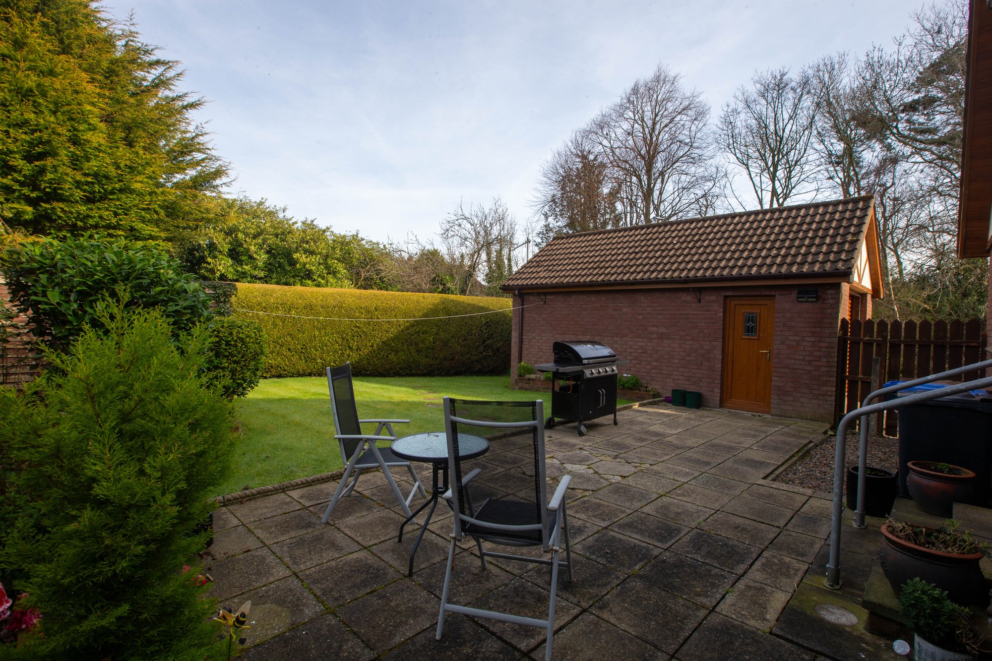 Pebbled driveway with parking area, patio to rear, timber garden shed, water tap, oil storage tank, gardens front, side and rear.