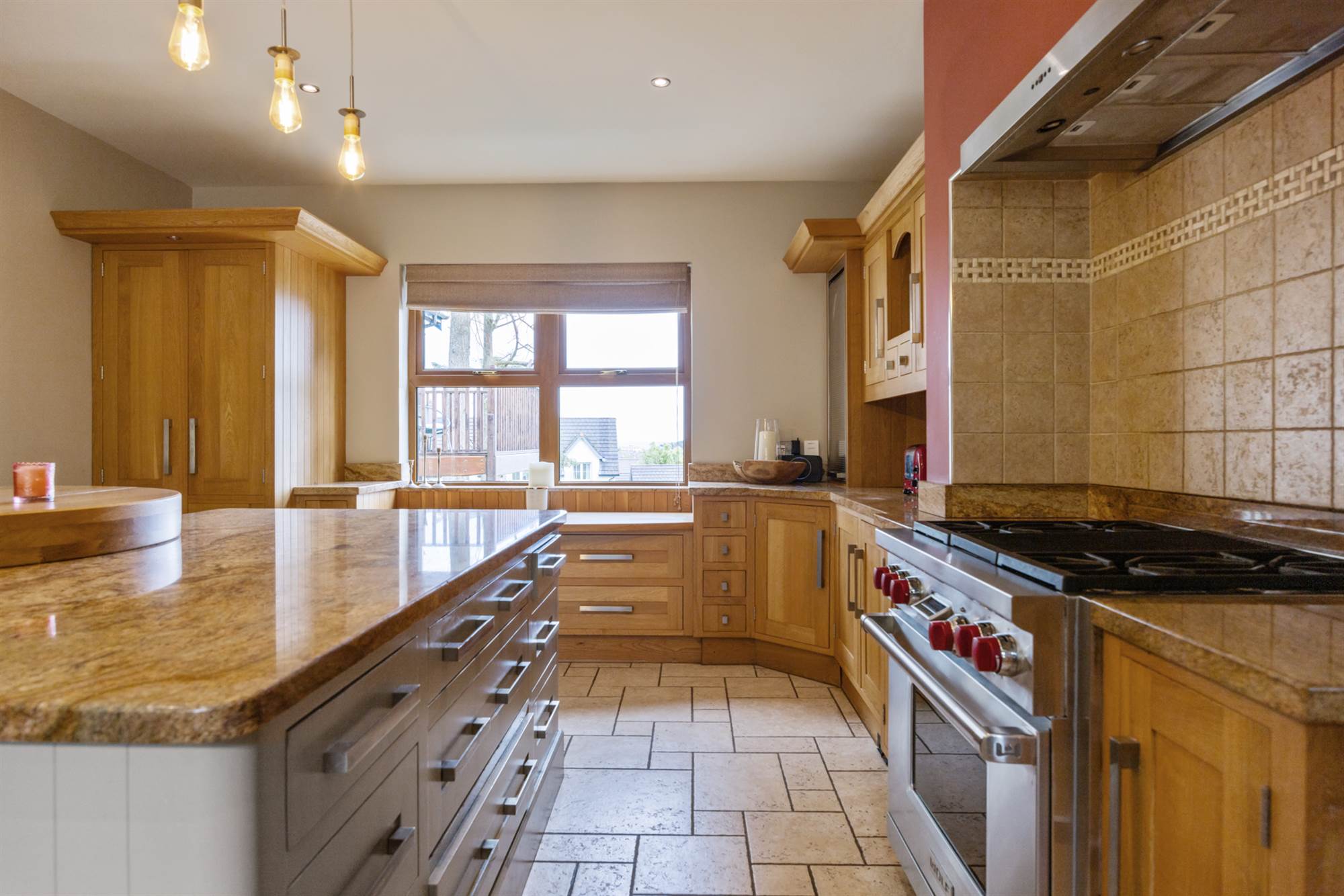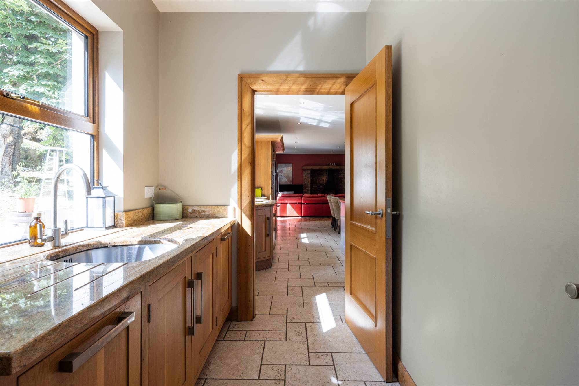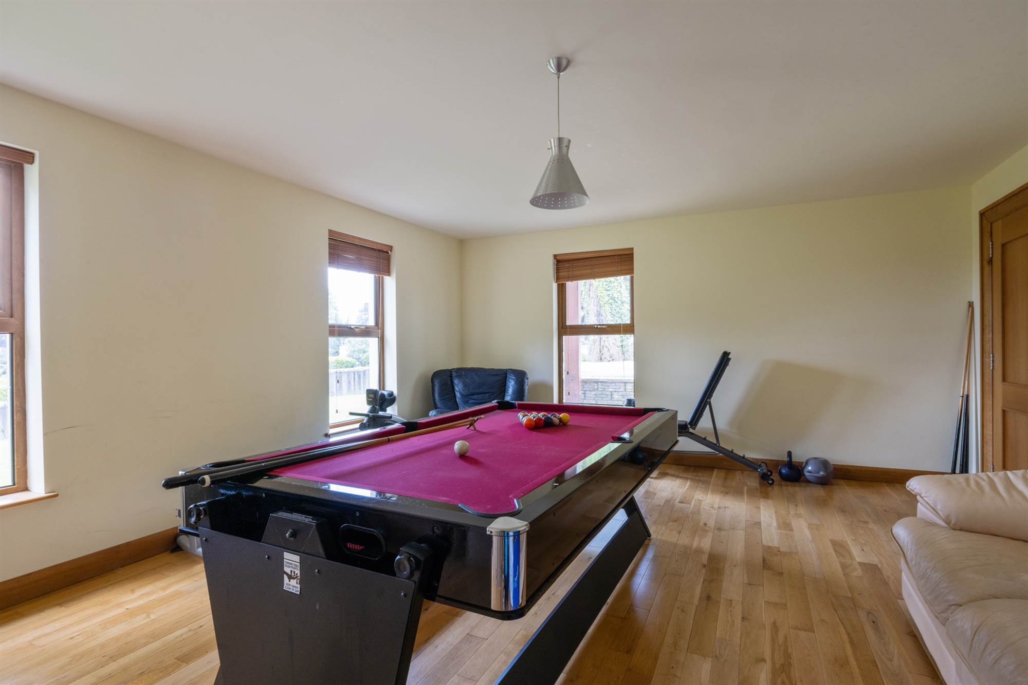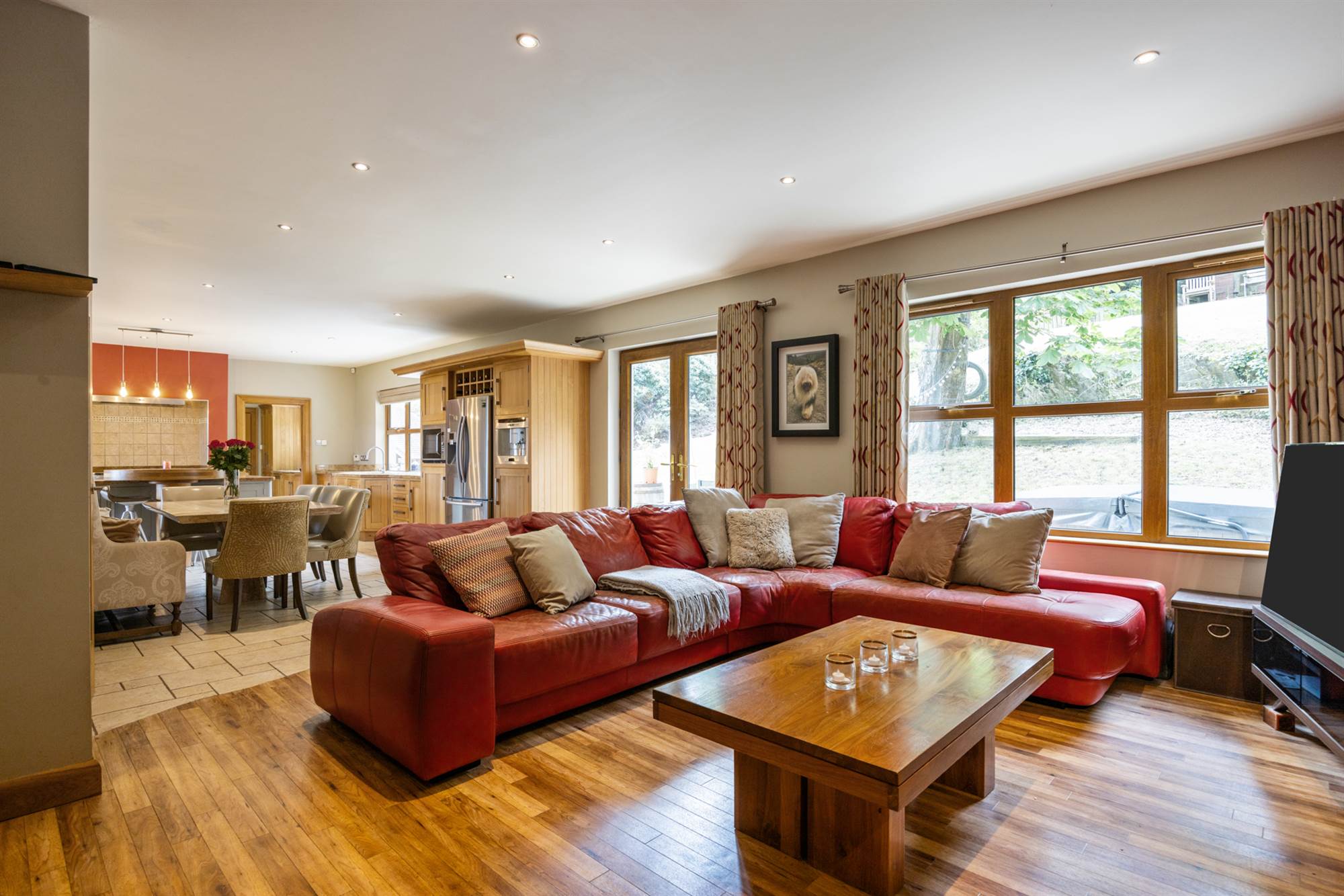 The extensive accommodation currently provides a four bedroom [principal bedroom with ensuite], family bathroom, spacious open plan kitchen/living/dining area with additional drawing room on the next floor with balcony which benefits from the superb view on offer. In addition there is a home office/additional bedroom and lower level games room/playroom with separate outside entrance, integral double garage and utility room.