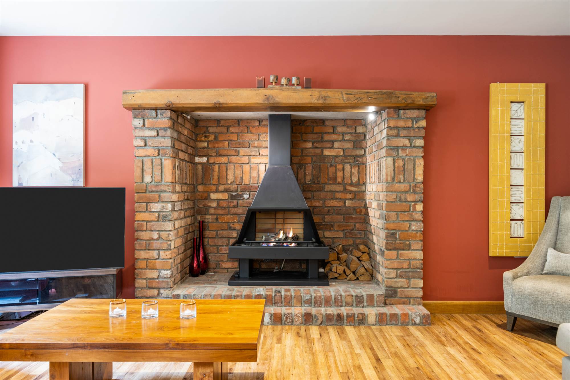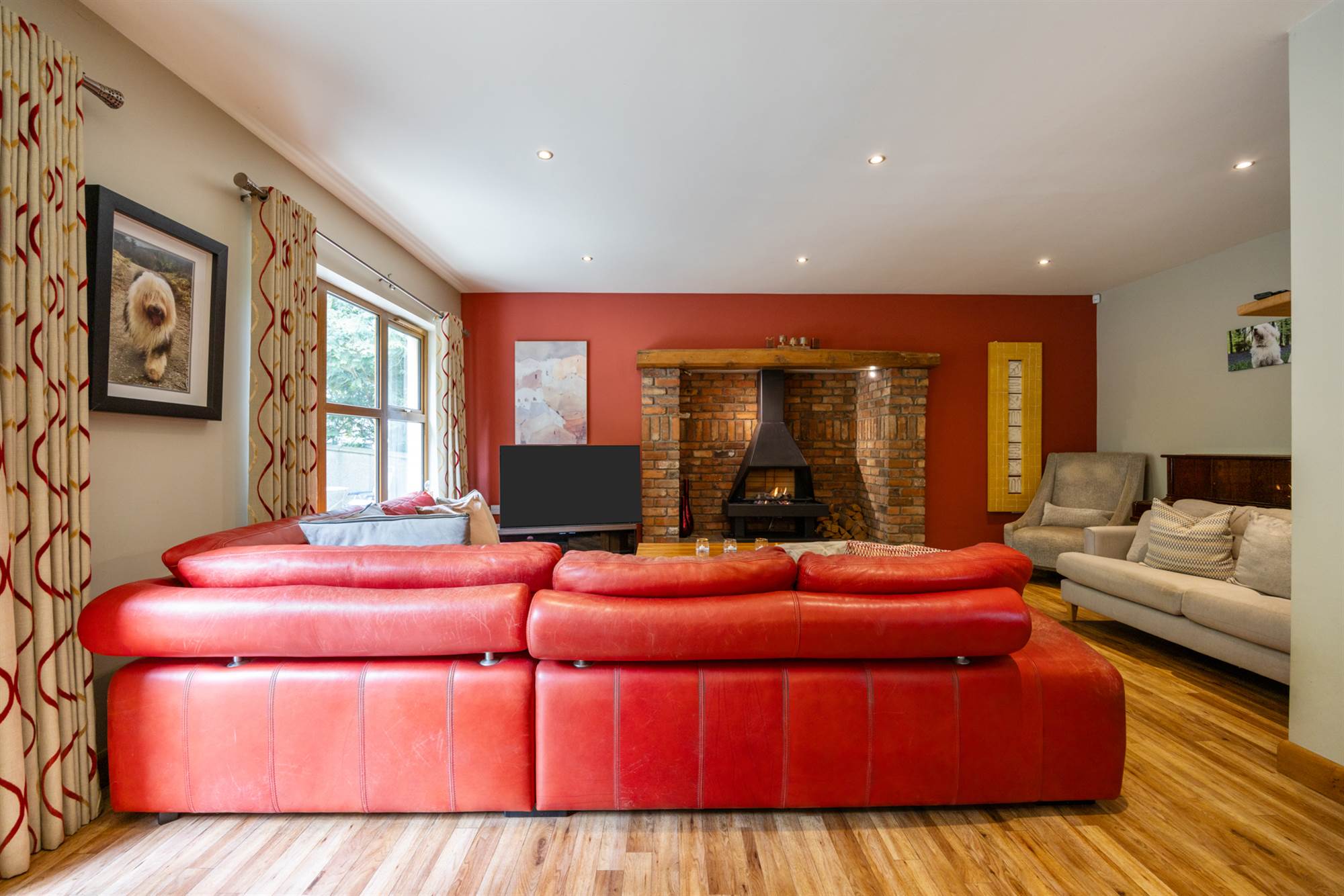 Living Area - Inglenook belfast brick surround fireplace with gas fire, double doors to rear garden, Amtico tiled floor.