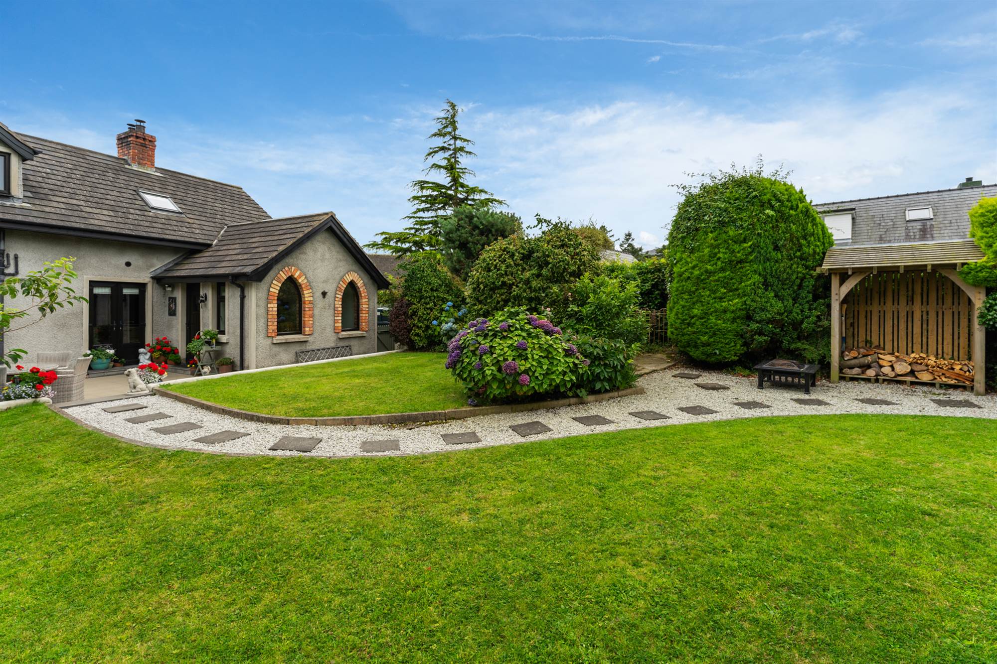 Superb well tended gardens to front and rear, lawns and patio. Generous driveway parking