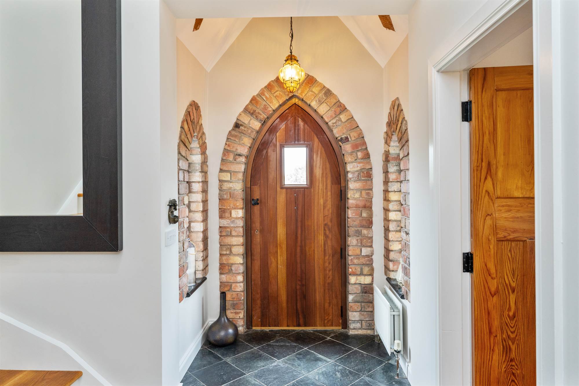 Feature arched Hardwood Door to Entrance Hall