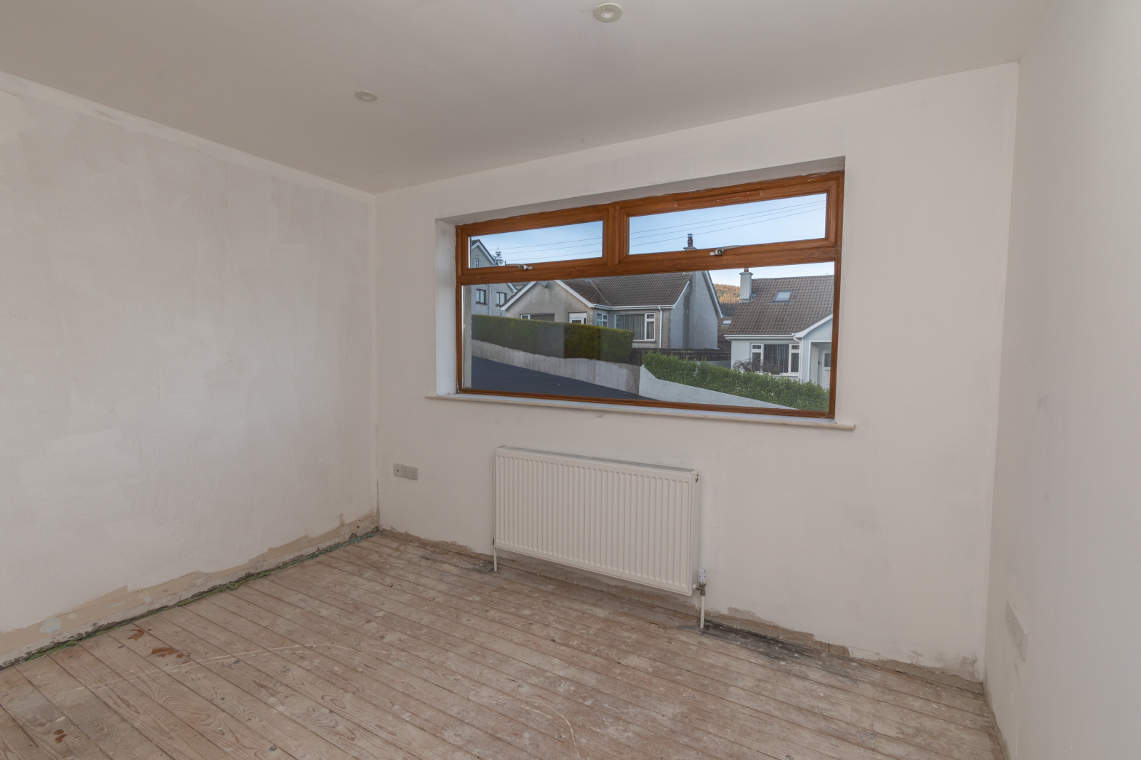 Featuring wooden laths left in place for a purchaser to install their own floor covering. Double radiator.