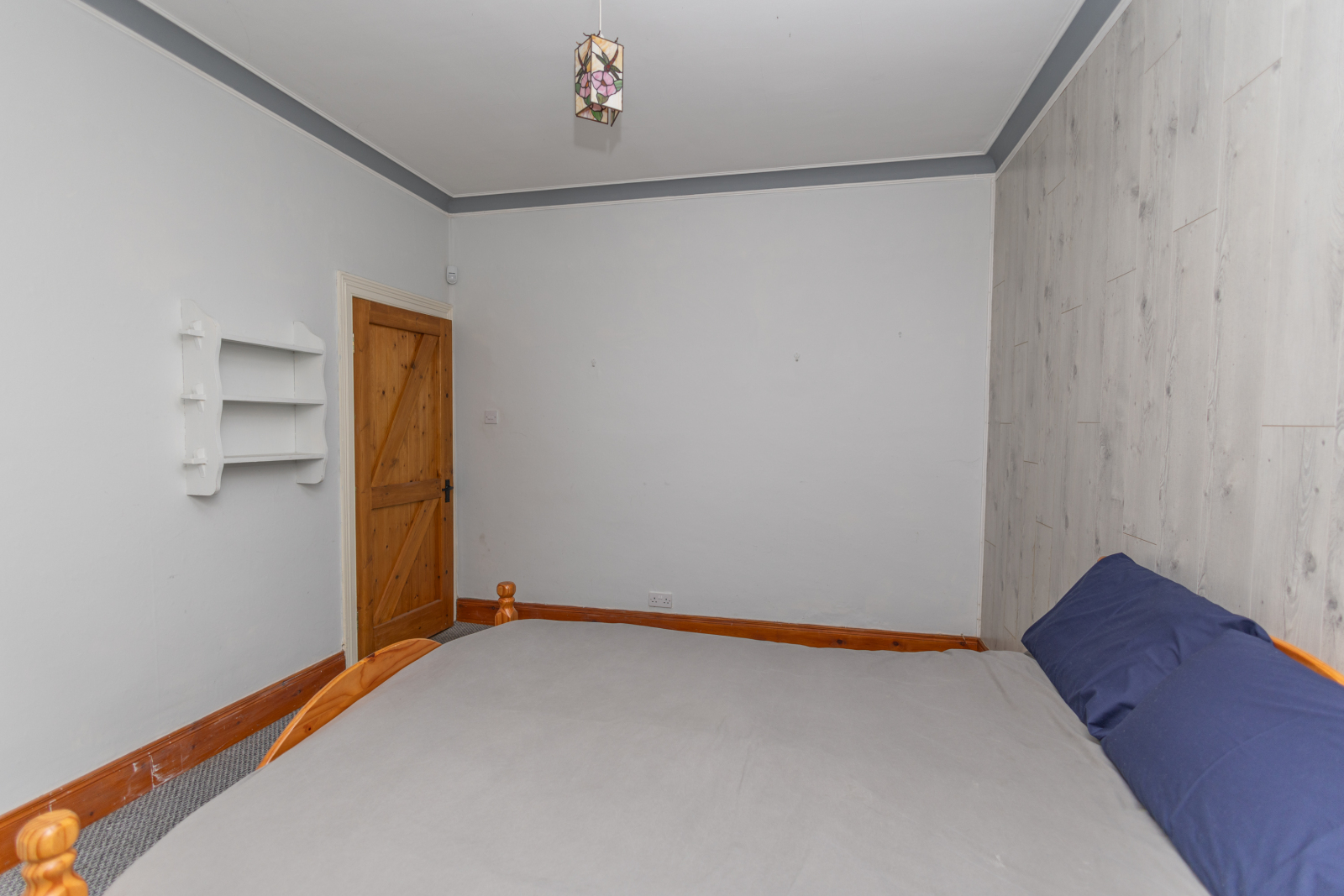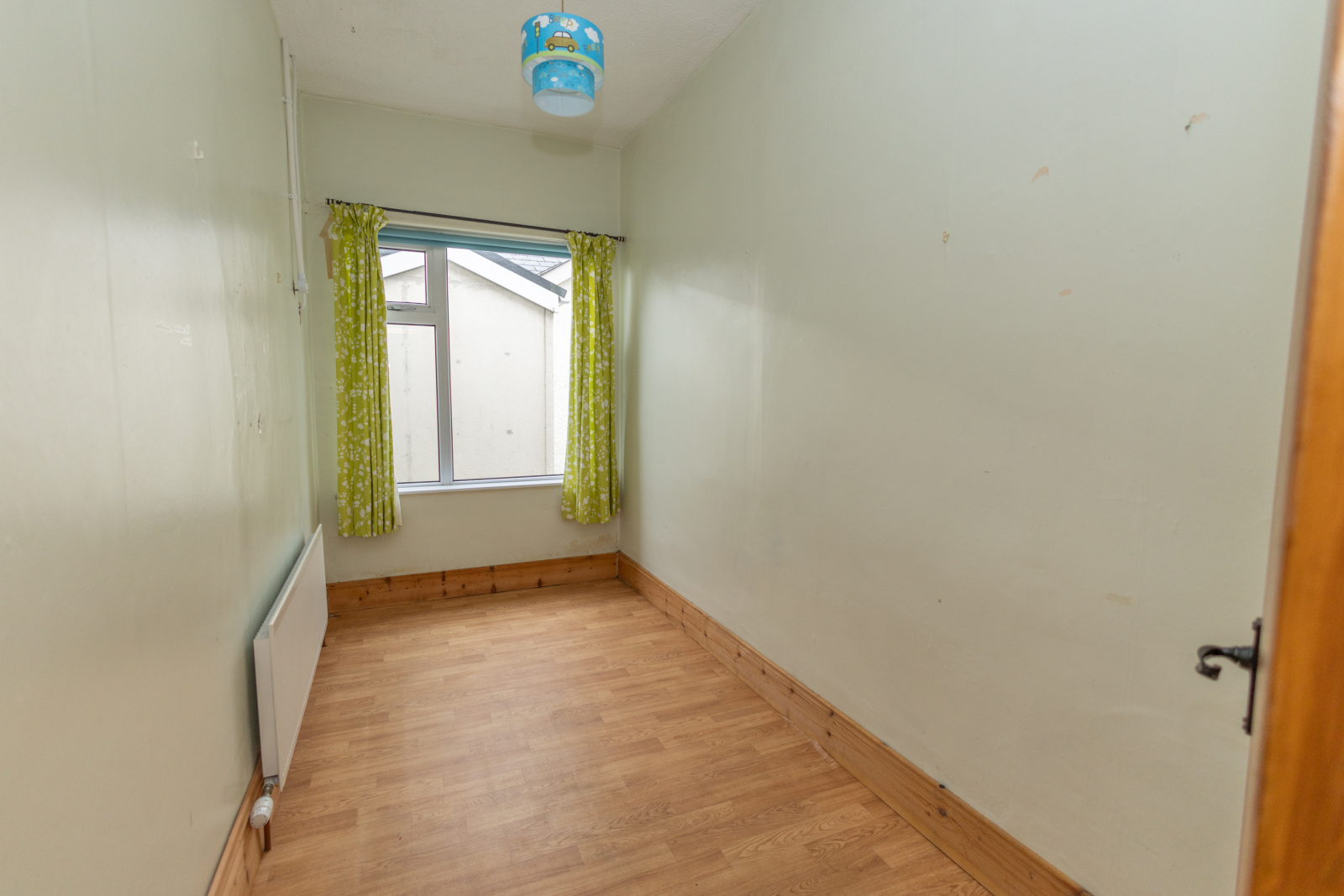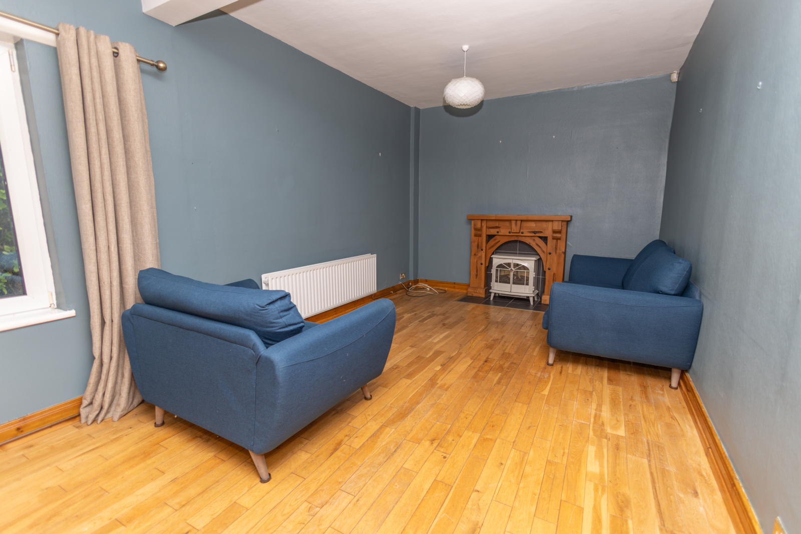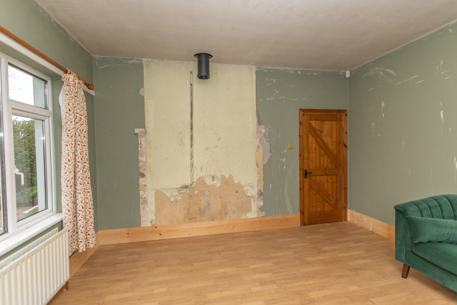 Laminate wooden flooring, large rear-aspect windows overlooking the garden, and flue installed for a stove (no stove currently in place). Double radiator.