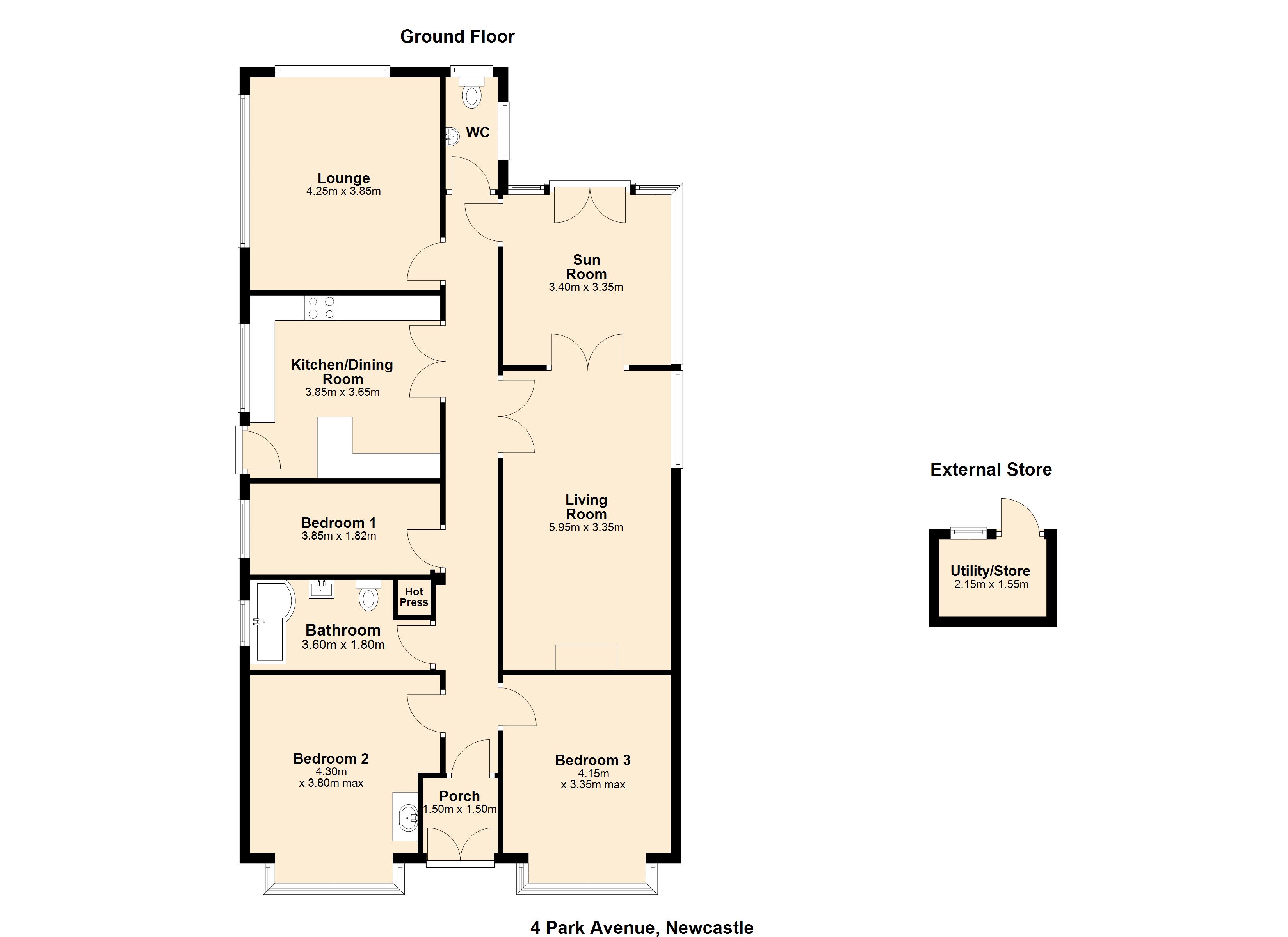4 Park Avenue, Newcastle is a superb 3-bedroom bungalow within walking distance to town. Features off-street parking, rear garden laid in lawn, and a detached outbuilding for storage. The property offers multiple reception rooms, providing excellent space and flexibility for a range of buyers.