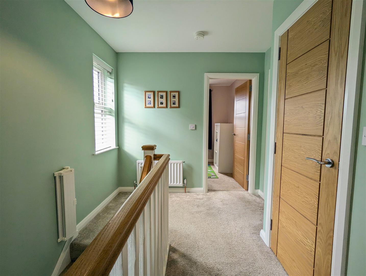Light coloured neutral carpet leading from staircase, access to three bedrooms, bathroom, hot press and roof space, one radiator
