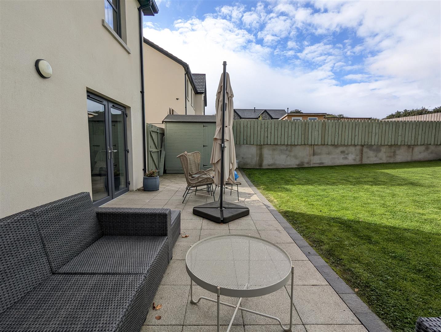 Neatly landscaped front garden with decorative planting and a low maintenance lawn. Tarmac driveway at the side of property, access to rear garden through a wooden gate. Enclosed rear garden consists of a lawn and patio area. Access to indoor living space through uPVC French doors.
