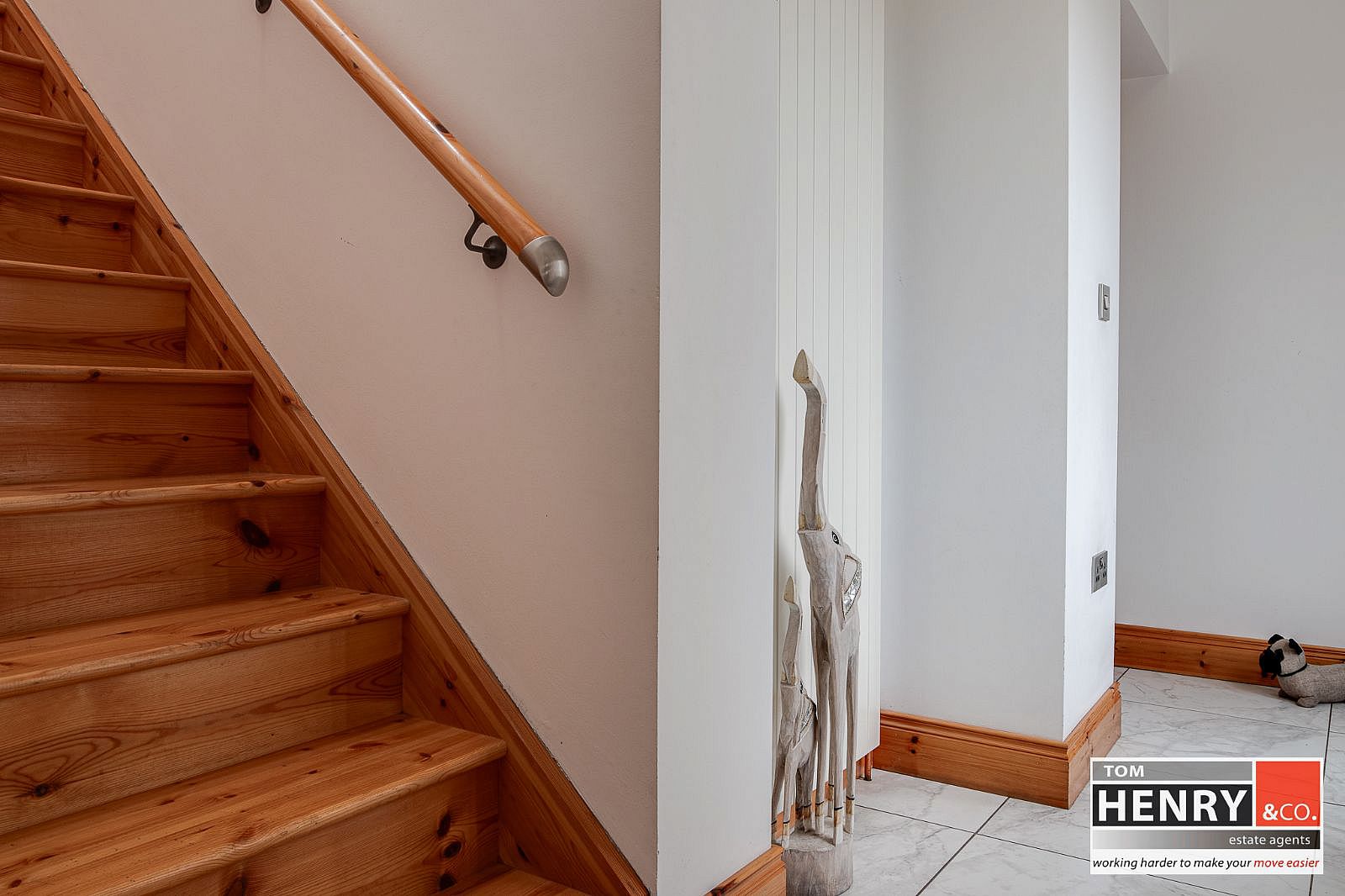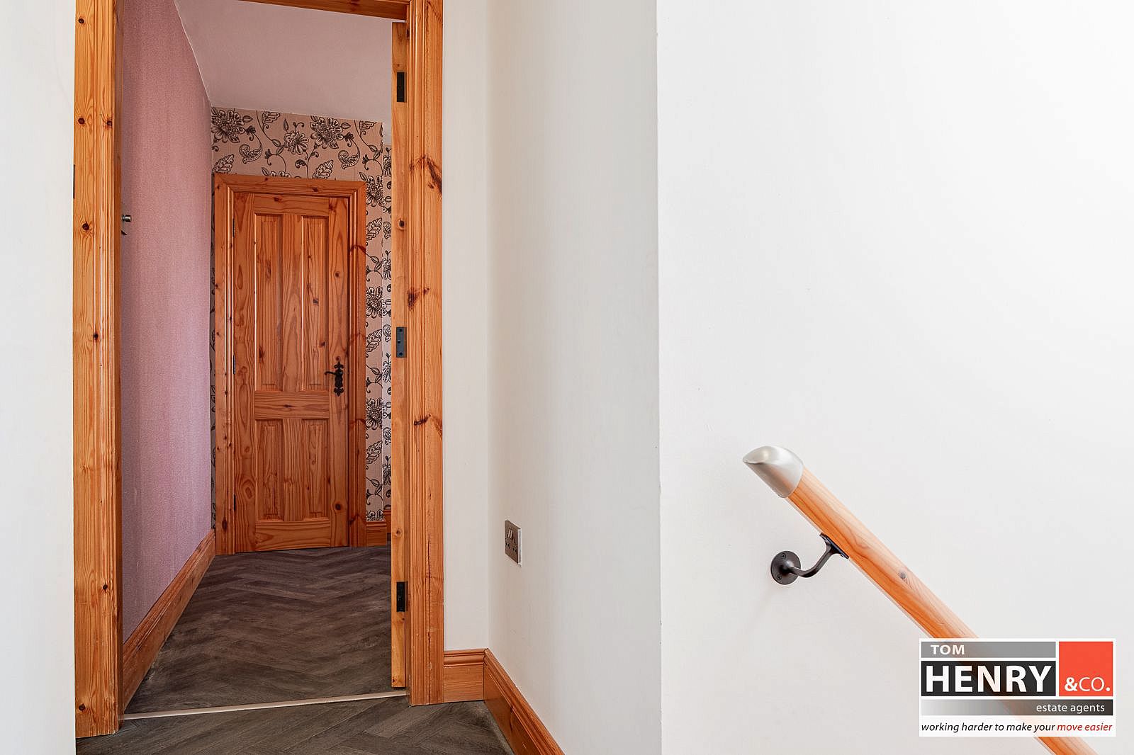 WOODEN STAIRS. VINYL TO FLOOR TO LANDING.