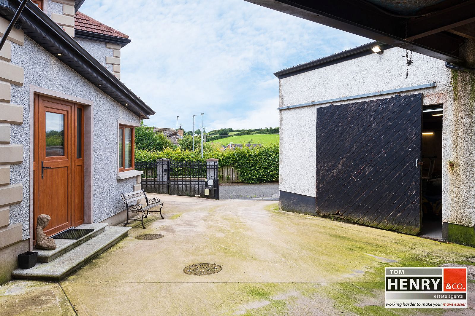 REMOTE GATED & PILLARED ENTRANCE. CONCRETE PATIO TO FRONT. CONCRETE PARKING TO SIDE. COVERED CARPORT AREA WITH OUTSIDE WATER TAP. FUEL STORE. OUTSIDE TOILET.