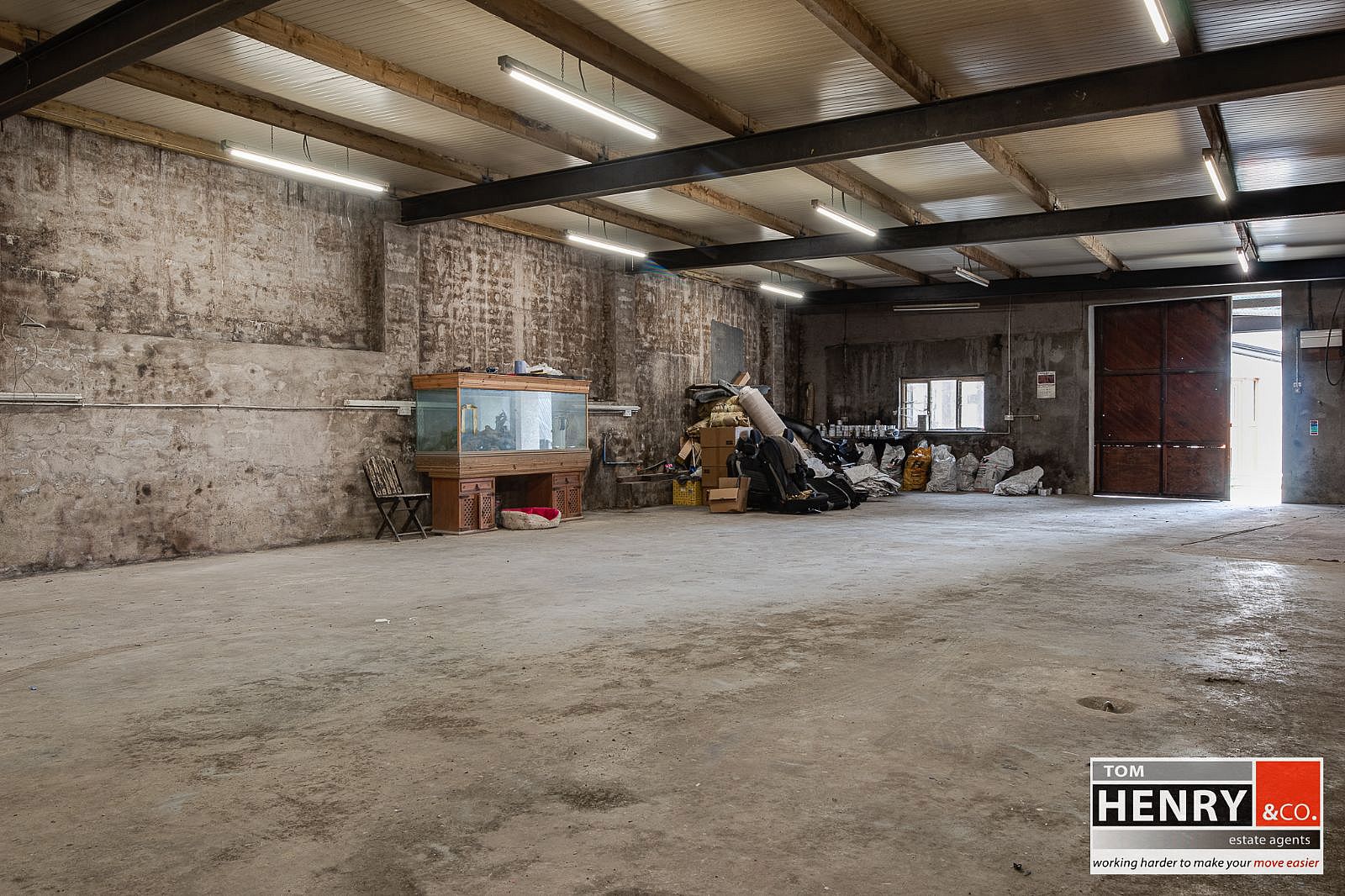 SLIDING WOODEN DOOR. ELECTRIC LIGHTS & POWER POINTS. PEDESTRIAN DOOR.