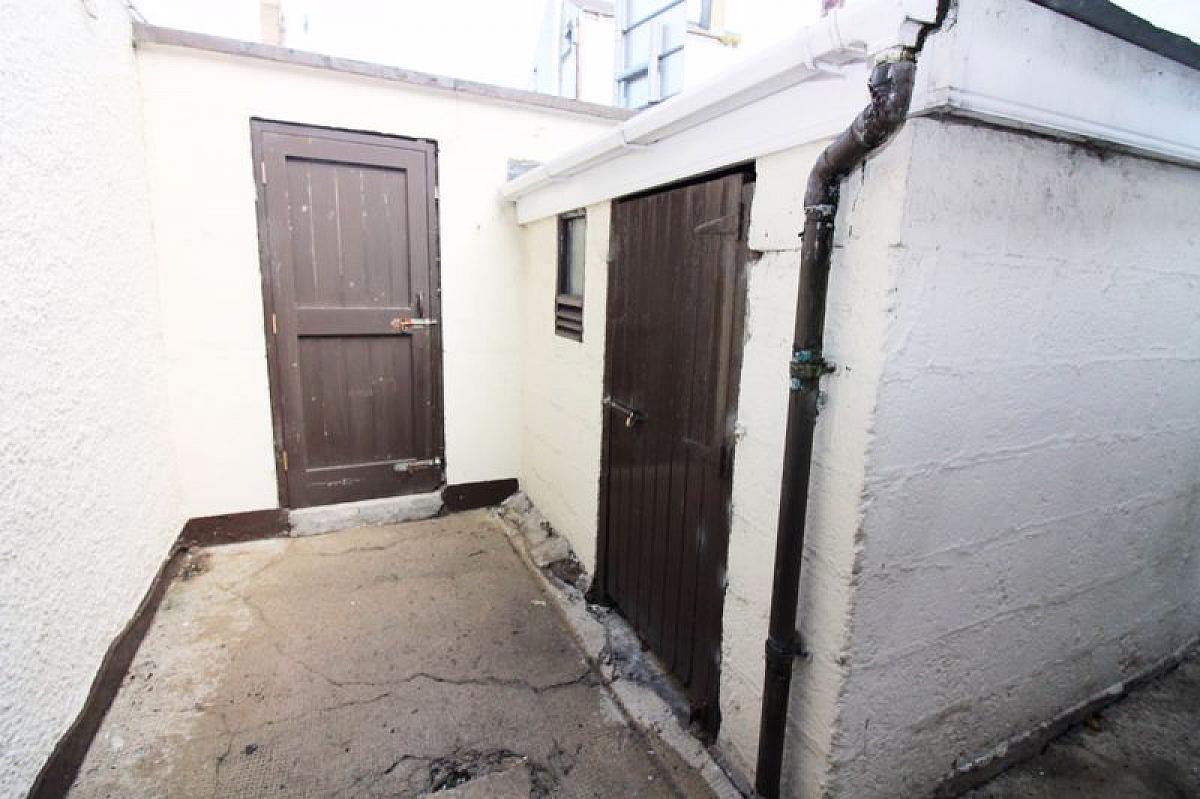 Enclosed yard with side entrance from front street. Stiore. Rear yard and stepped up garden area with entrance via dwelling. Outside light and watertap.