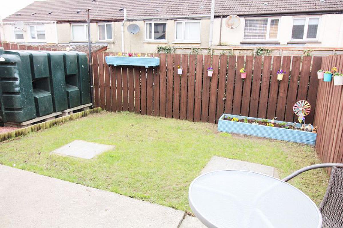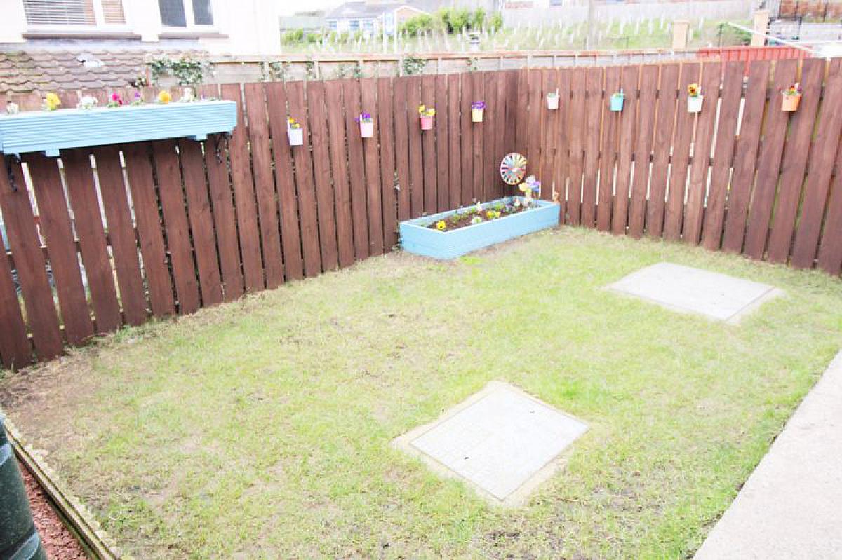 Enclosed rear garden and patio. Outside light and watertap. Garden area to front with selection of plants and shrubs. Store.