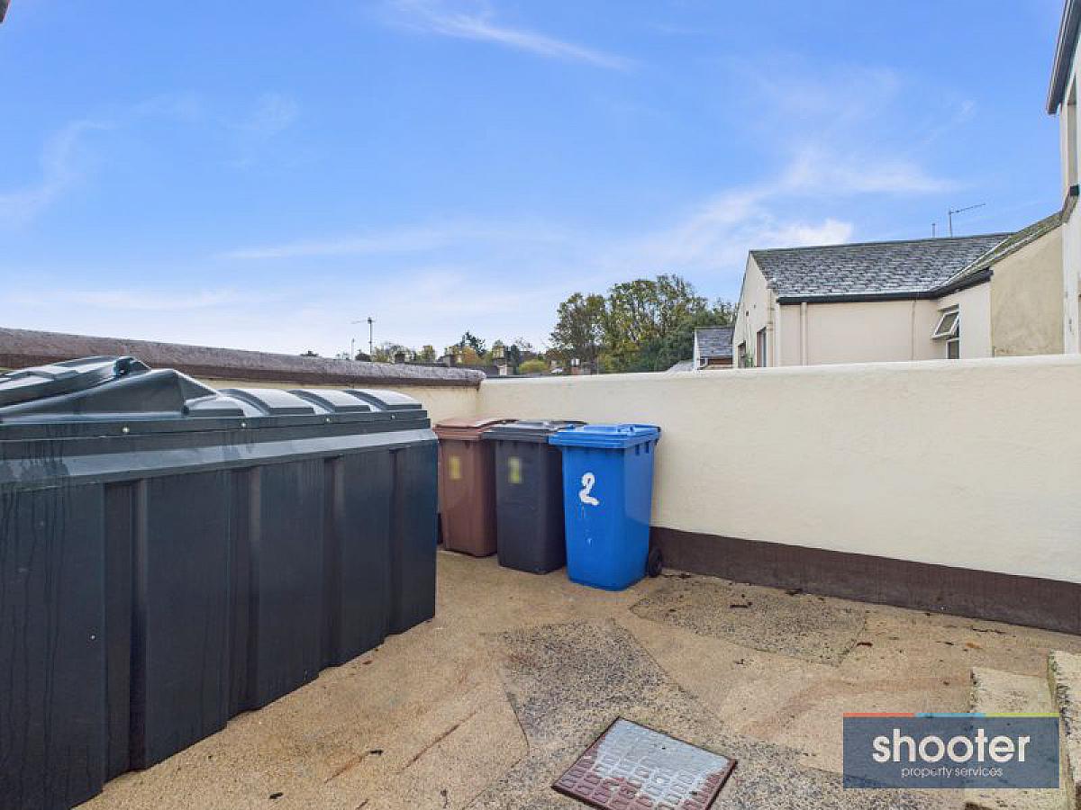 Enclosed concrete rear yard with boiler / storage house. Water tap and outside light.