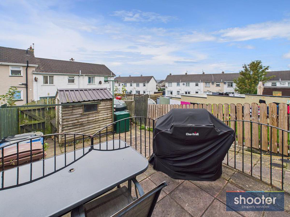 Tarmacadam driveway to front. Enclosed rear garden with paved patio area and shed with electrical supply. Outside light and watertap.