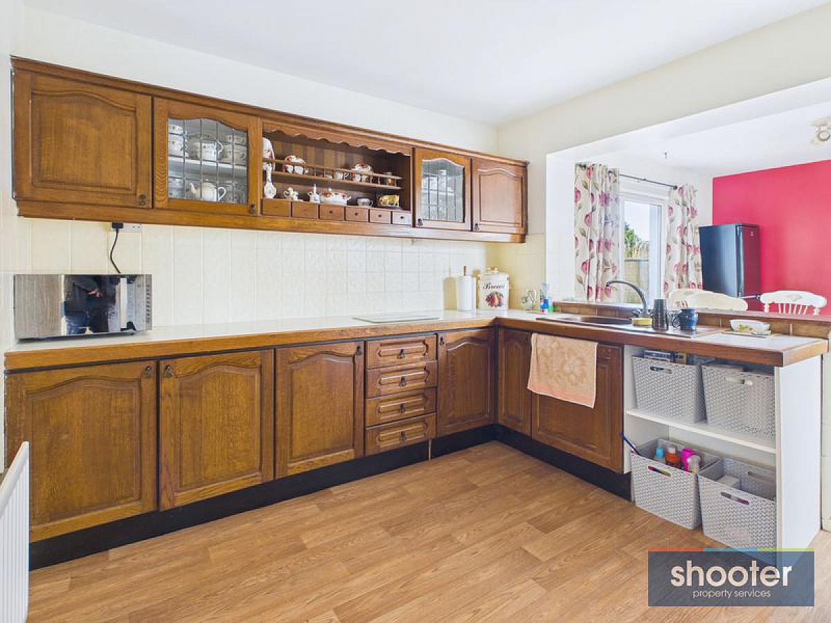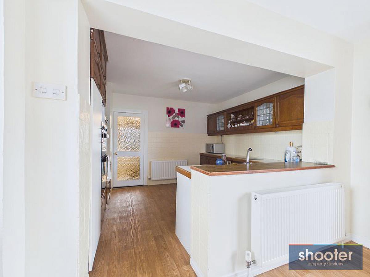 High and low level units with stainless steel sink unit. Spaces for washing machine and tumble dryer. Vinyl floor.