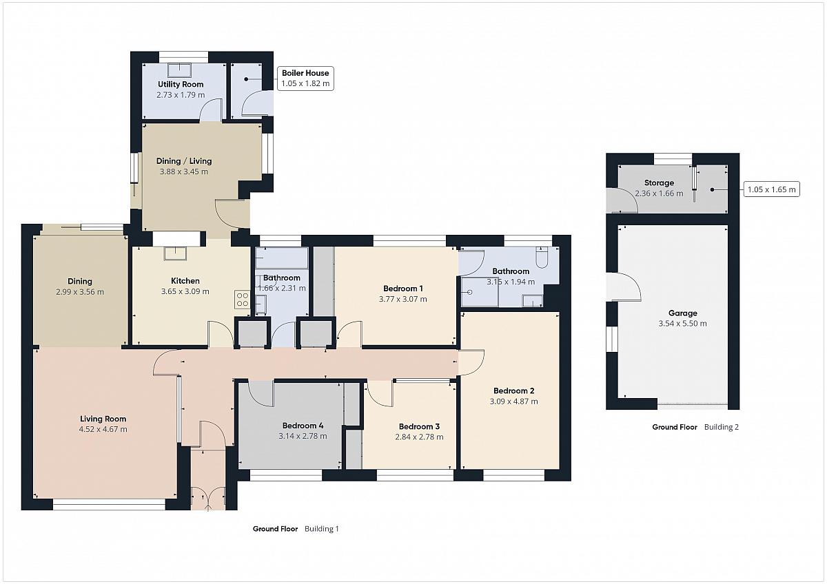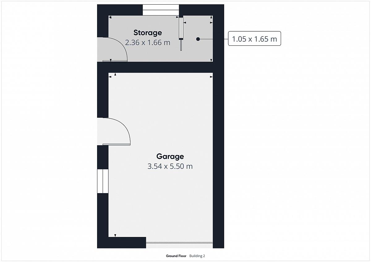 Up and over door. Storage rooms off (2.36 x 1.66 m / 1.05 x 1.65m)