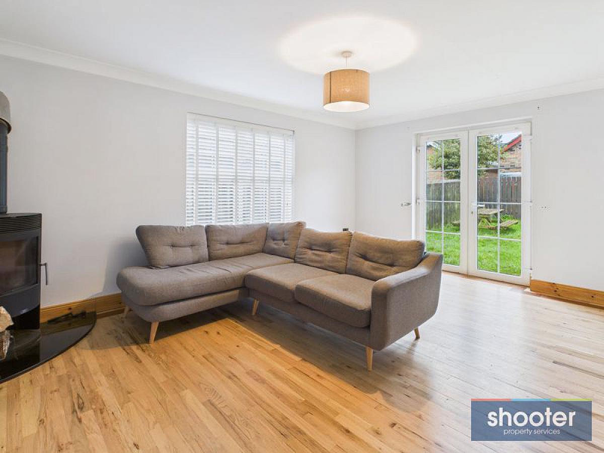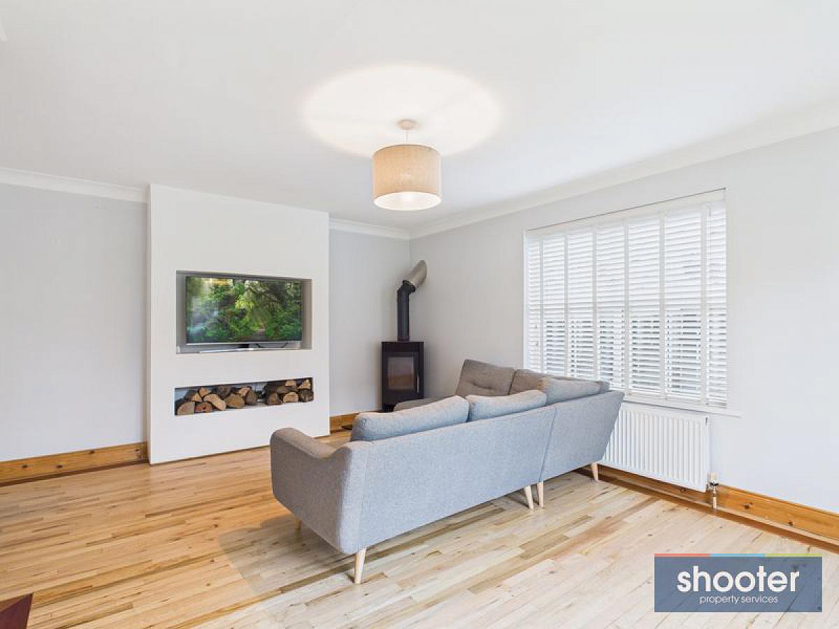 Media wall and free standing corner wood burning stove with tile hearth. Television point. Double French doors to rear garden.