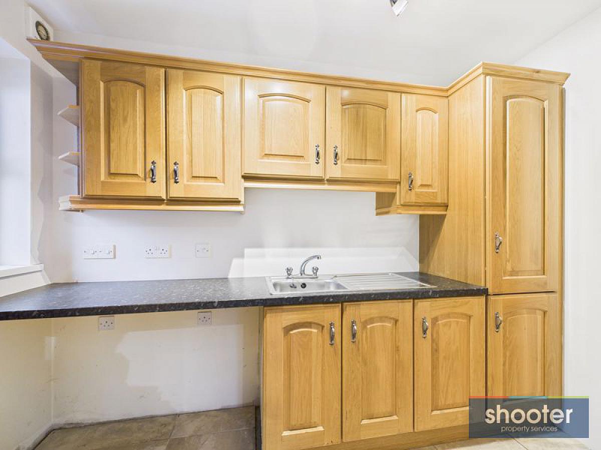 Range of high and low level units incorporating stainless steel sink unit with space for washing and tumble dryer. Storage cupboard off. Ceramic tile floor. Hardwood side access door to driveway.