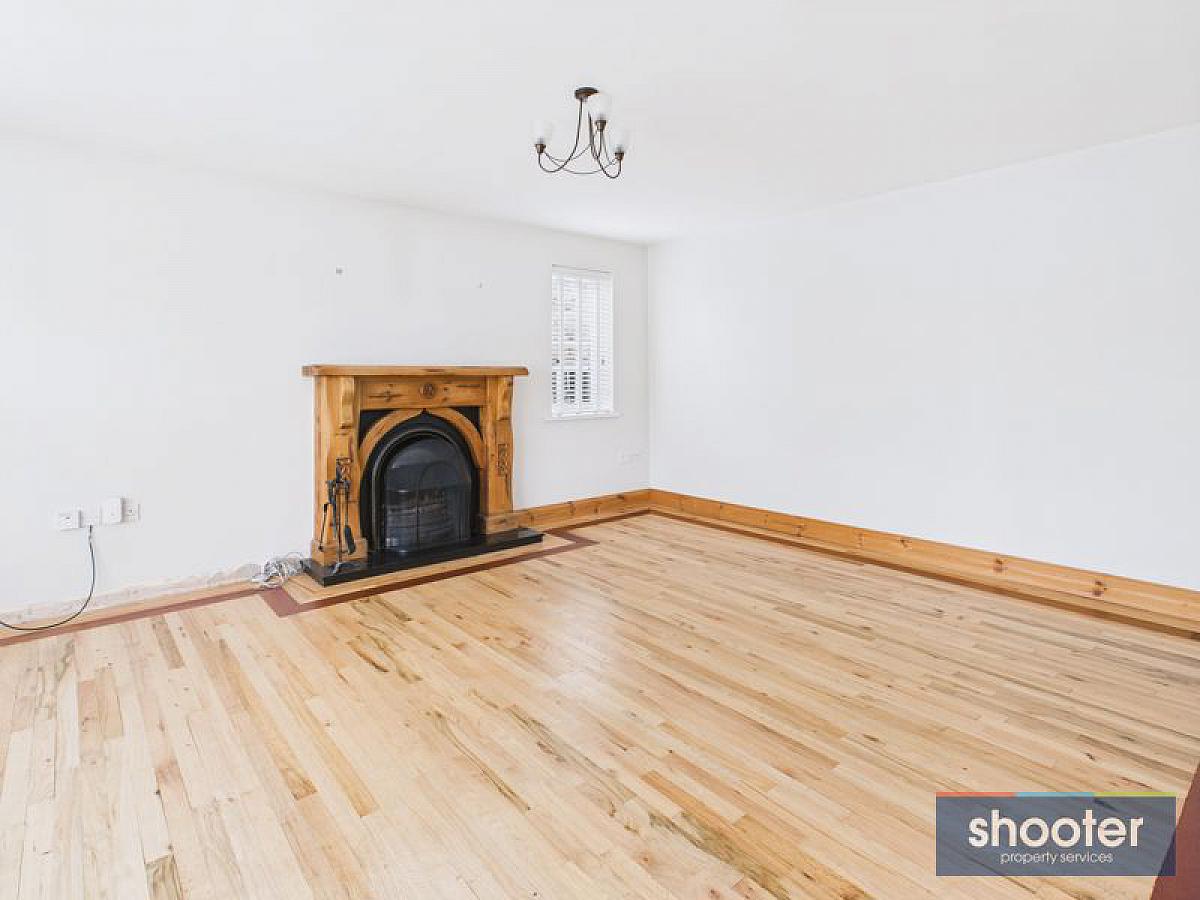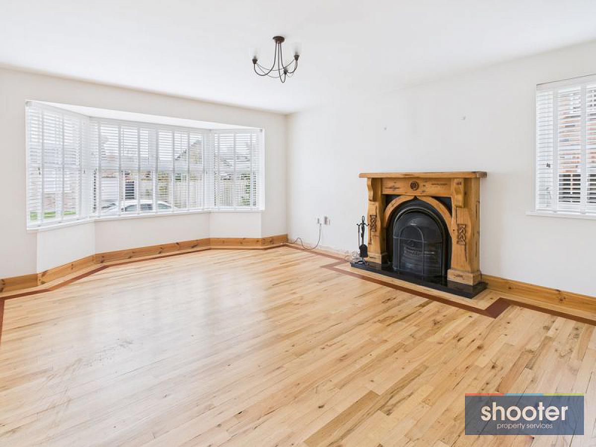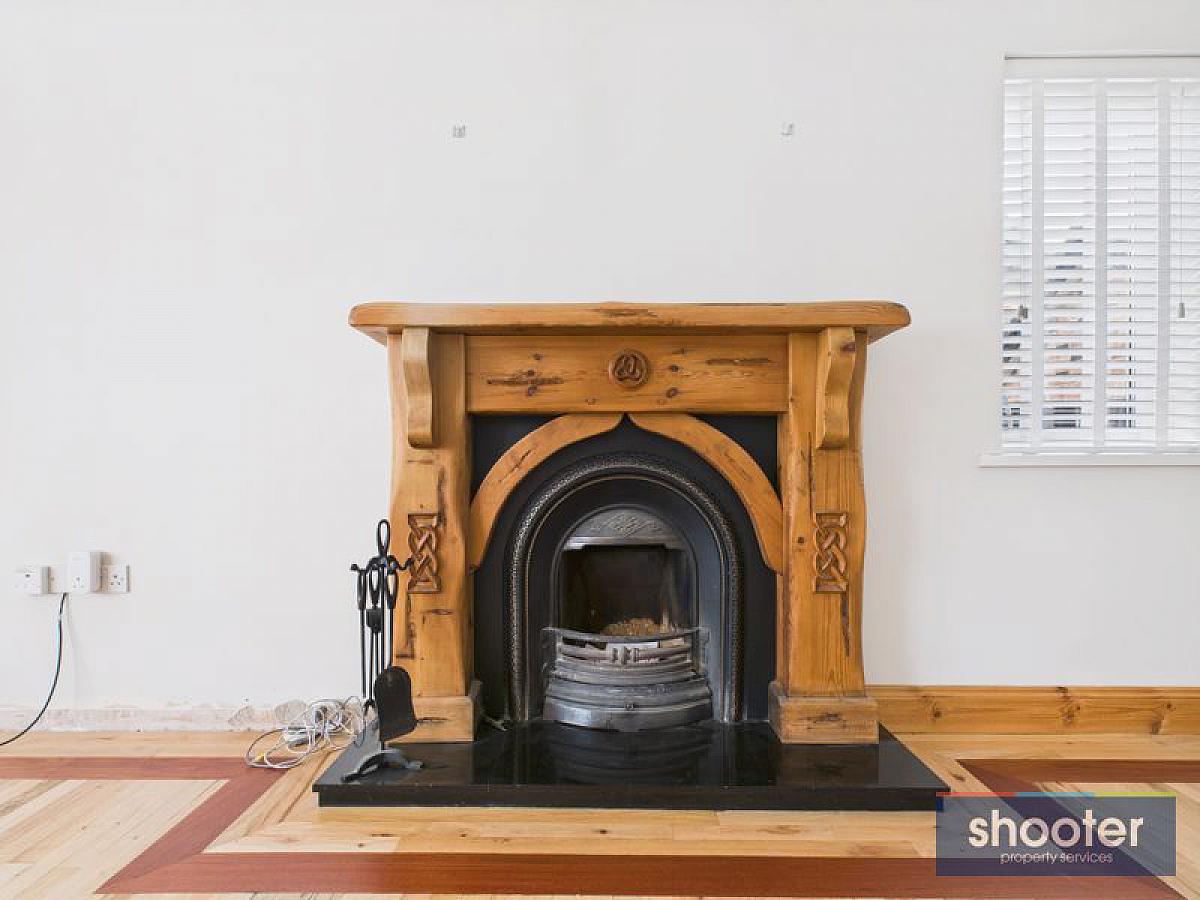 Bay window. Cast iron fireplace with decorative inset, tile hearth, wooden surround and mantel. Television aerial, television point and telephone point. Hardwood floor.