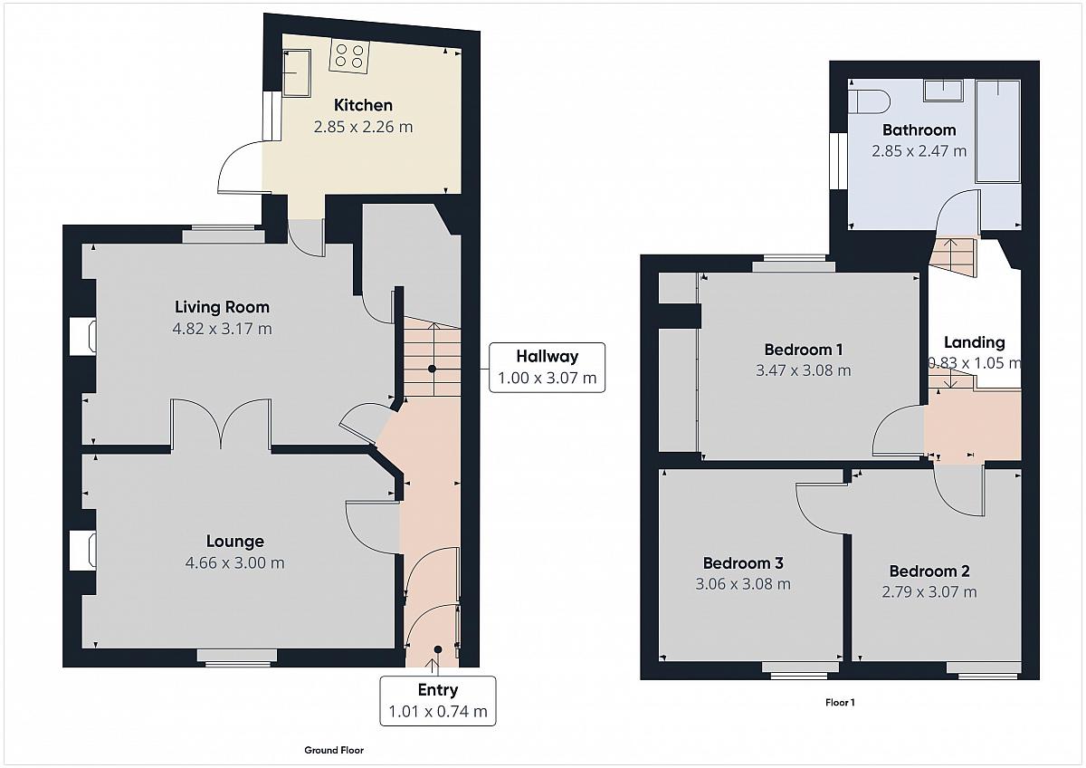 Entrance Hallway 3'3'' X 10'1'' (1.00m X 3.07m)
