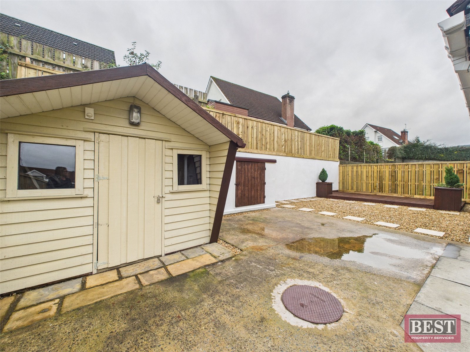 Externally, the property benefits from a tarmac driveway offering off-street parking, a side garden laid in lawn with timber fencing, and a fully enclosed rear garden with both patio and decking areas. A timber shed provides useful outdoor storage.