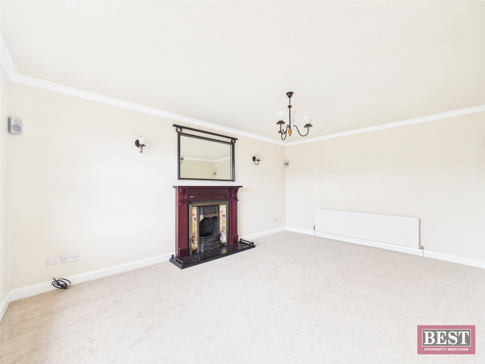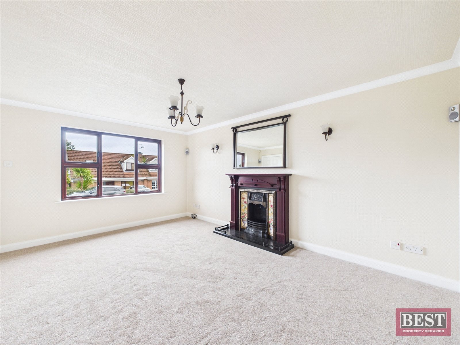 The ground floor comprises of a bright lounge to the front with mahogany surround fireplace, decorative inset, carpet flooring and ceiling coving. A second reception or optional fourth bedroom is also positioned at the front, finished with laminate flooring and ceiling coving, offering flexibility to suit family needs. To the rear, the spacious open plan kitchen and dining area is fitted with a range of oak upper and lower-level units, a breakfast bar, tiled flooring, and part wall tiling. Sliding patio doors open directly onto a private patio and decking area, creating an ideal space for entertaining. A separate utility room with additional units, plumbing for appliances, timber ceiling and rear access, along with a downstairs WC, complete the ground floor.