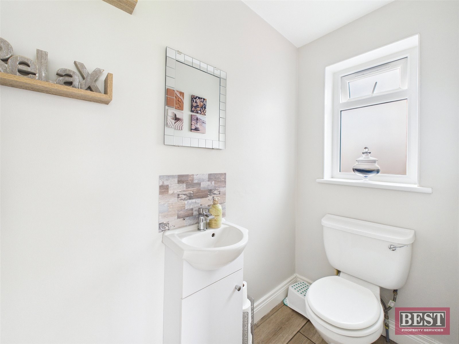 To the rear of the home, the spacious kitchen and dining area is fitted with a range of upper and lower level units, with space a freestanding cooker and plumbing for a dishwasher. Double doors open directly onto the patio and rear garden, providing an excellent space for family dining and entertaining. A separate utility room, conveniently located off the kitchen, offers additional storage, is plumbed for both a washing machine and tumble dryer, and provides direct access to the rear garden. A two-piece downstairs WC completes the ground floor accommodation.