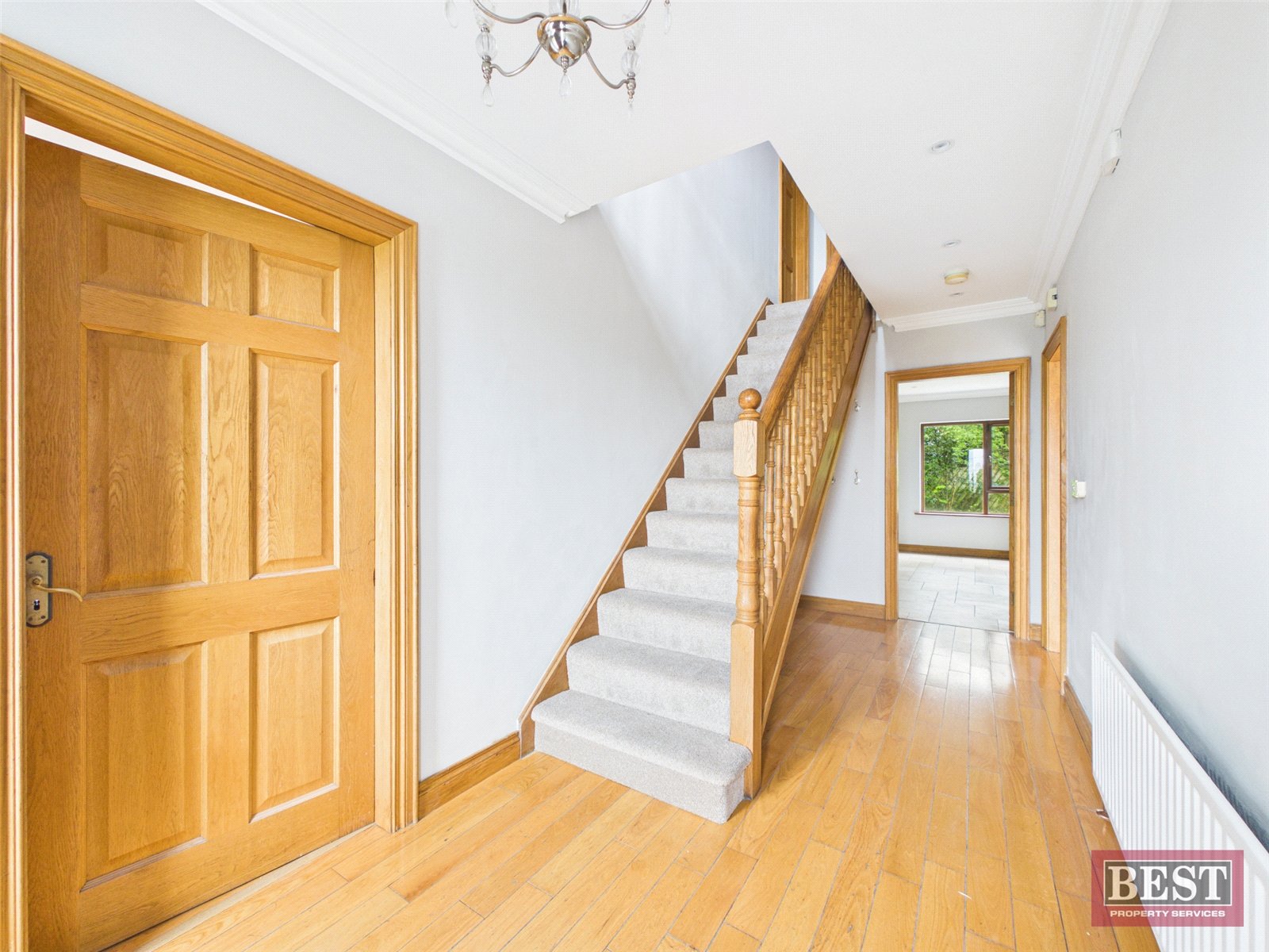 An exceptional five-bedroom detached residence, 11 Liska Villas presents a superb opportunity to acquire a spacious and beautifully presented family home offering spacious and well-proportioned accommodation throughout. Thoughtfully designed, the property boasts high-quality finishes including solid oak flooring, doors, skirting and architrave, complemented by elegant ceiling roses and coving which enhance the overall sense of style and character.