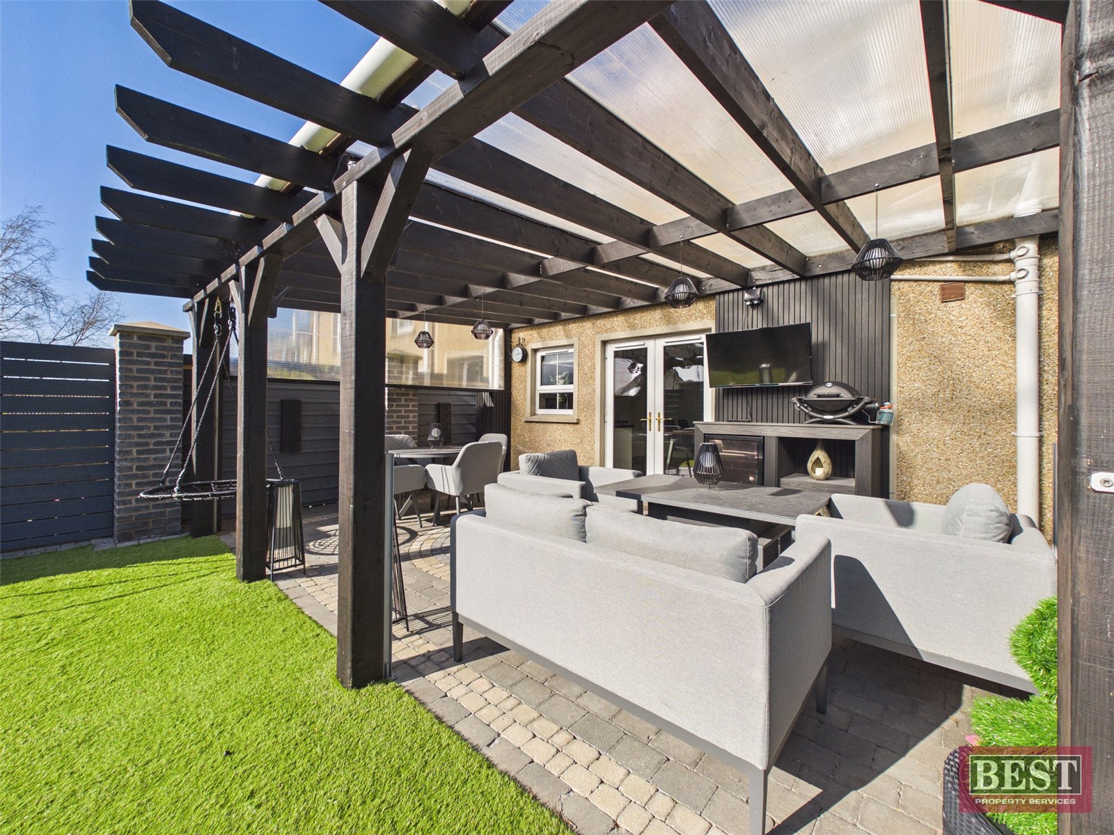 Externally, the property boasts a beautiful enclosed rear garden with a roofed pergola and timber shed. Walled and timber fencing to boundaries. Parking is available to the front of the property.